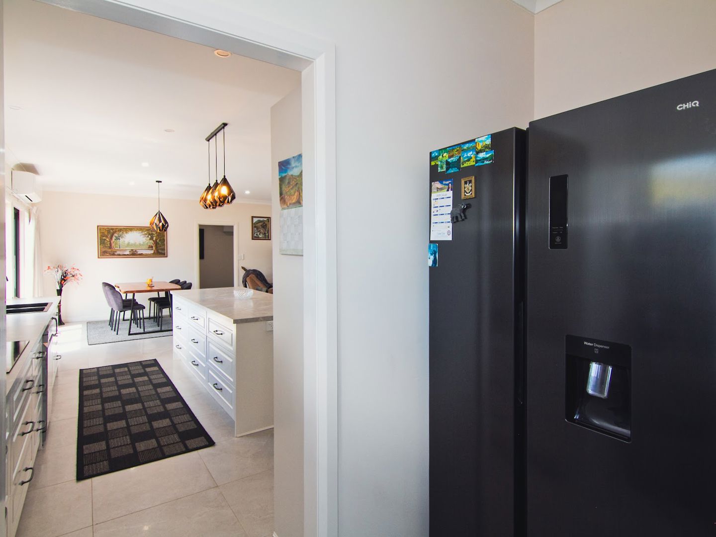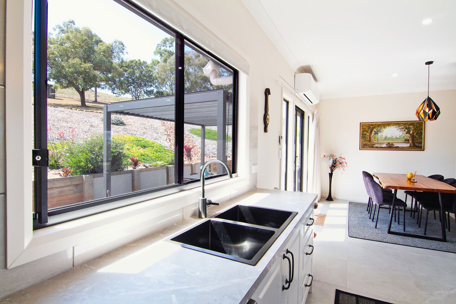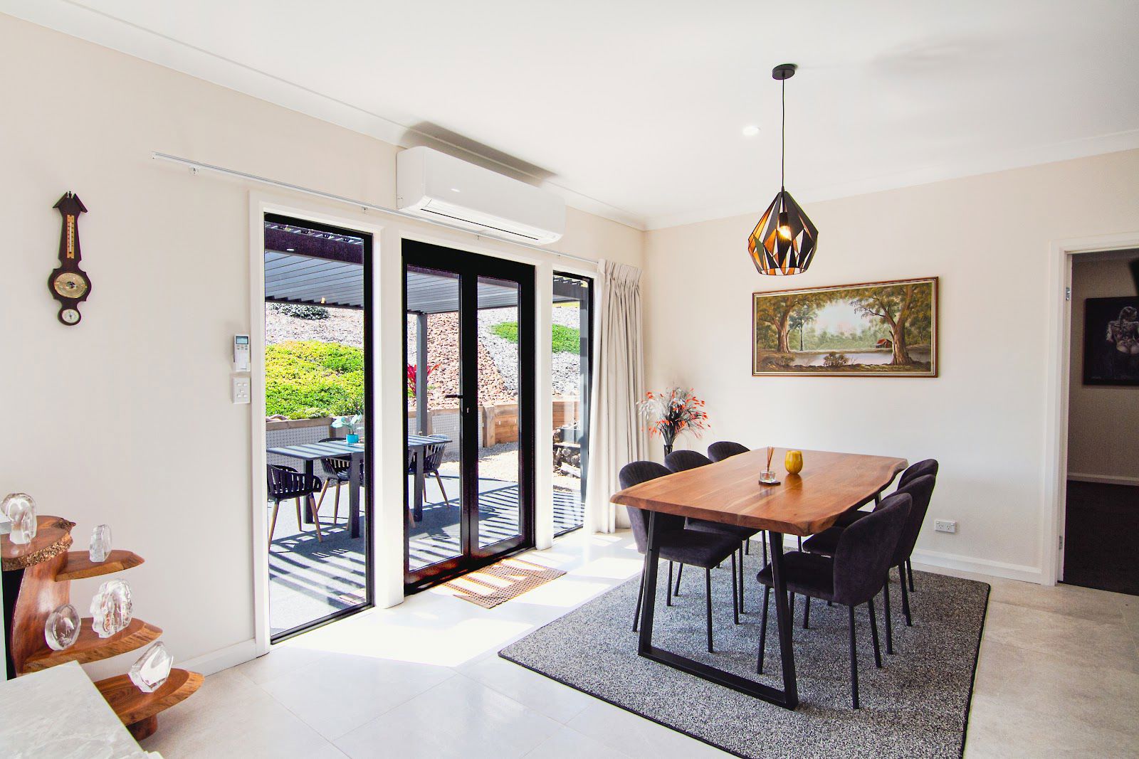 Open plan living with large split-system air conditioner