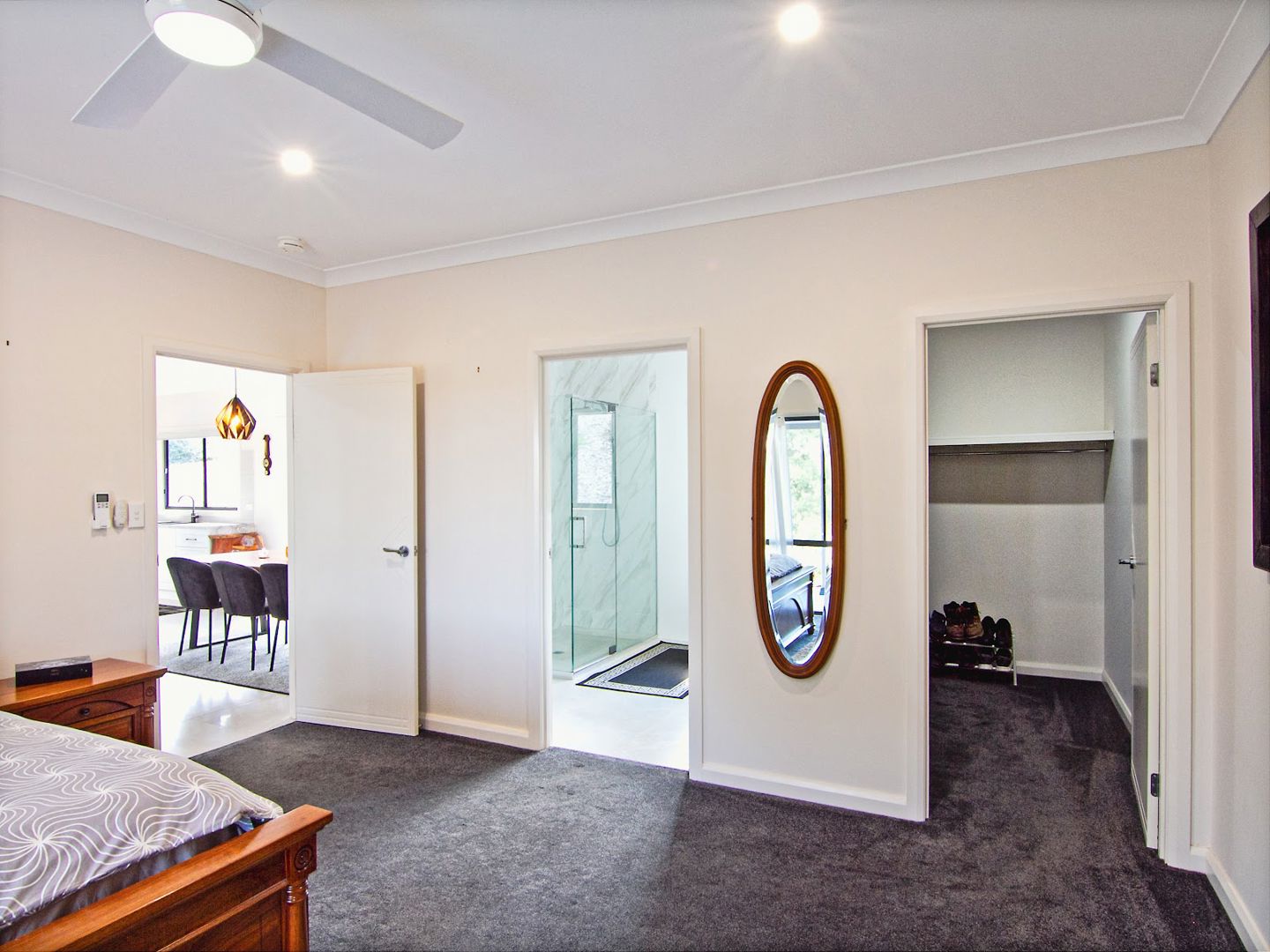 Remote-controlled ceiling fans, dimmable lighting, built-in robes in all bedrooms, walk-in robe and AC in master