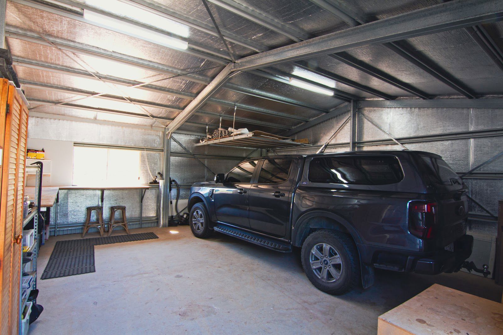 A powered double garage with workbenches and plenty of power points offers serious man-cave potential, plus there’s caravan storage, a potting shed, and a shipping container which is already wired and ready for connection to the grid if you wish. There's lots of space for many visitors and whatever activities you can imagine.