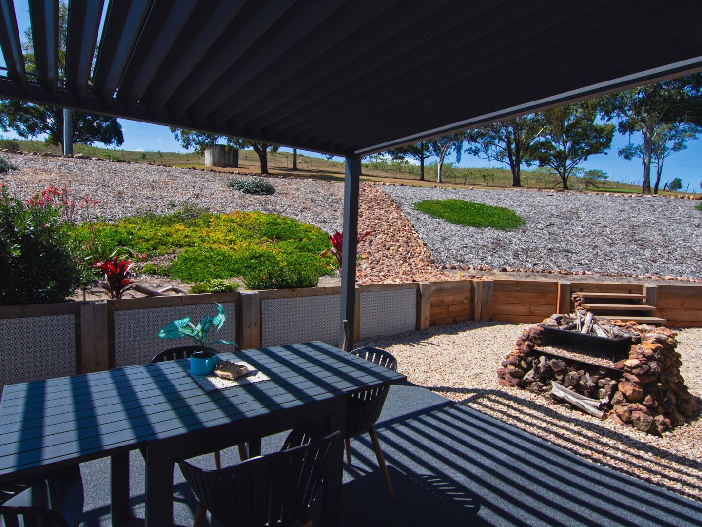 Outdoor living is just as impressive with a wide verandah at the front, and a pergola with open/close shutters at the back, both perfect for sitting and enjoying your cuppa. There’s landscaping and a great fire pit area close by, perfect for entertaining, plus plenty of established beds for gardening, enjoying growing plants and vegetables.