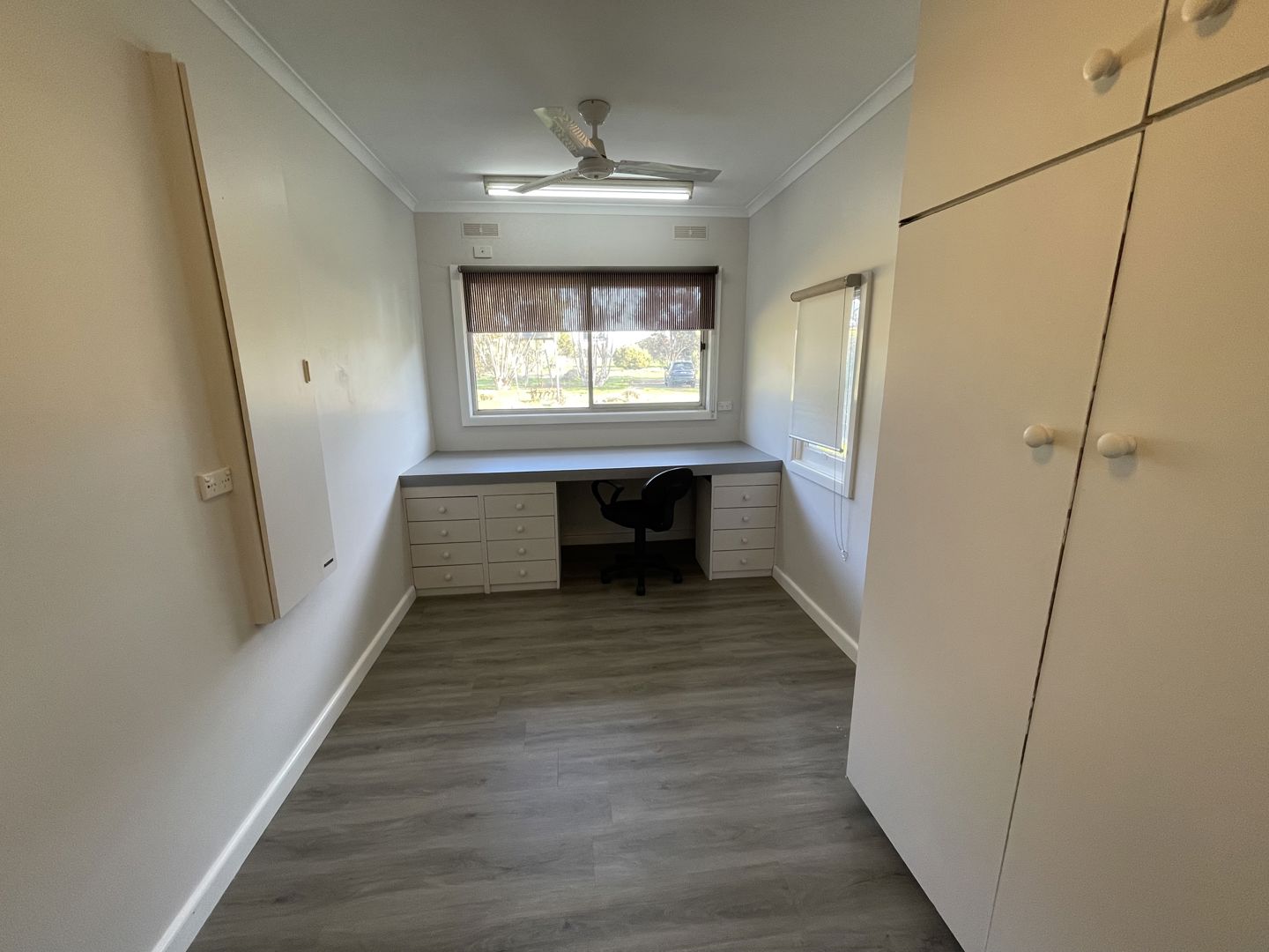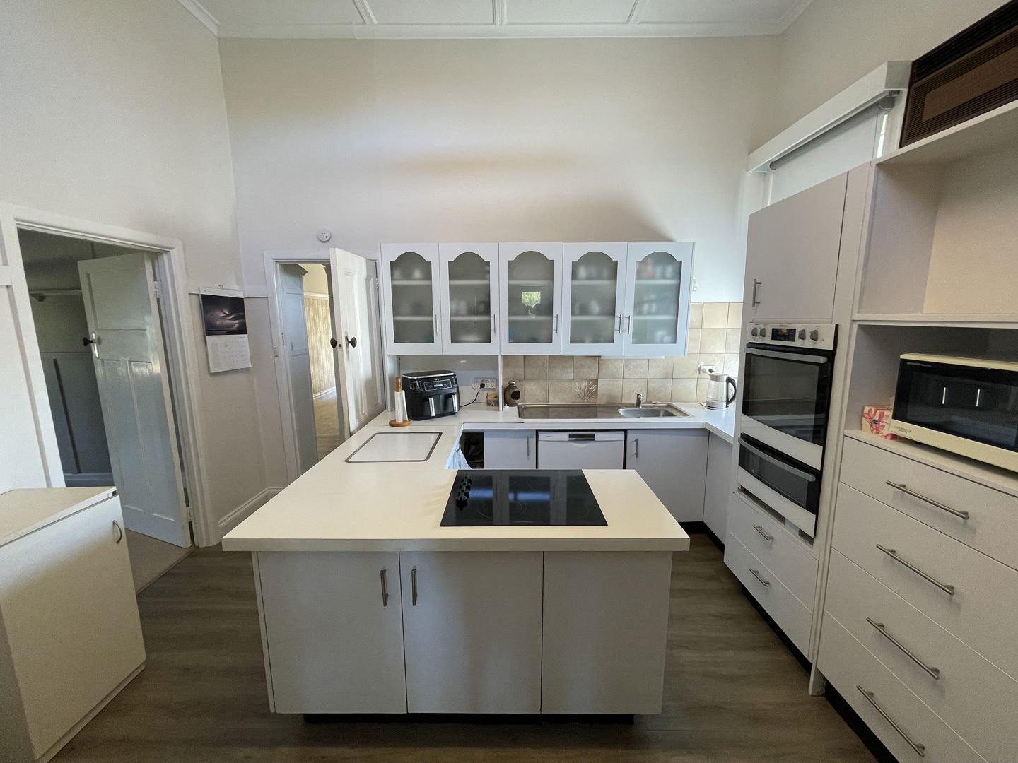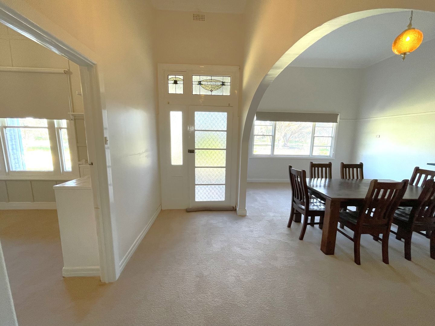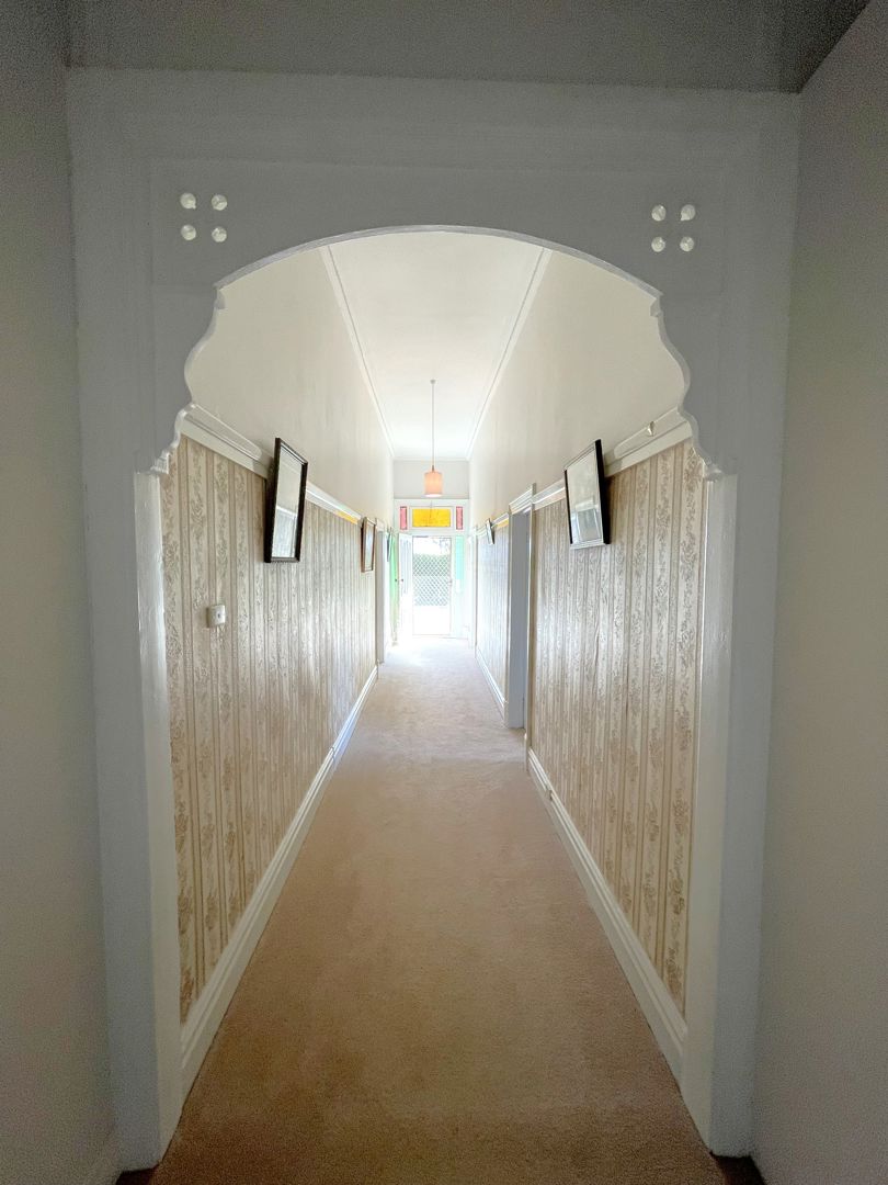 The updated homestead showcases a blend of traditional character and modern convenience. A wide passageway leads from the front entrance past three spacious bedrooms with built-in robes, connecting to a formal lounge and dining room. Home features plaster cornices, panelling boards, lacework, picture rails, stained glass, and a classic bullnose verandah. The central kitchen is well-equipped with ample cupboards, bench space, dishwasher, electric ovens, and cooktop, opening to both the formal lounge and a huge rear family lounge. An additional study and fourth bedroom complete the floorplan.