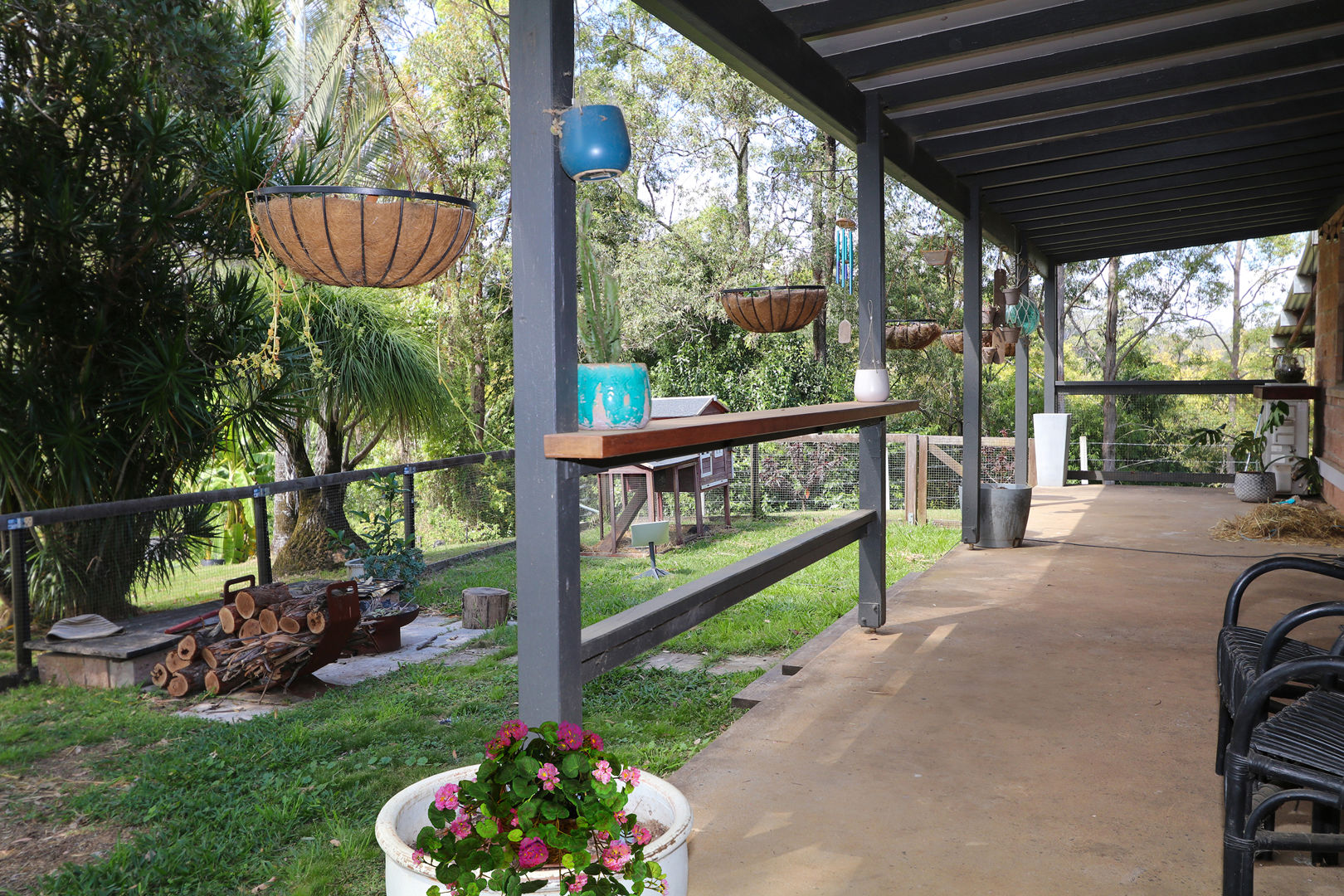The land itself has fertile soils and is ideal for gardening and small-scale farming, with established orchards, an enclosed chicken run, many raised garden beds, cattle yards, and fertile ground for growing your own produce.