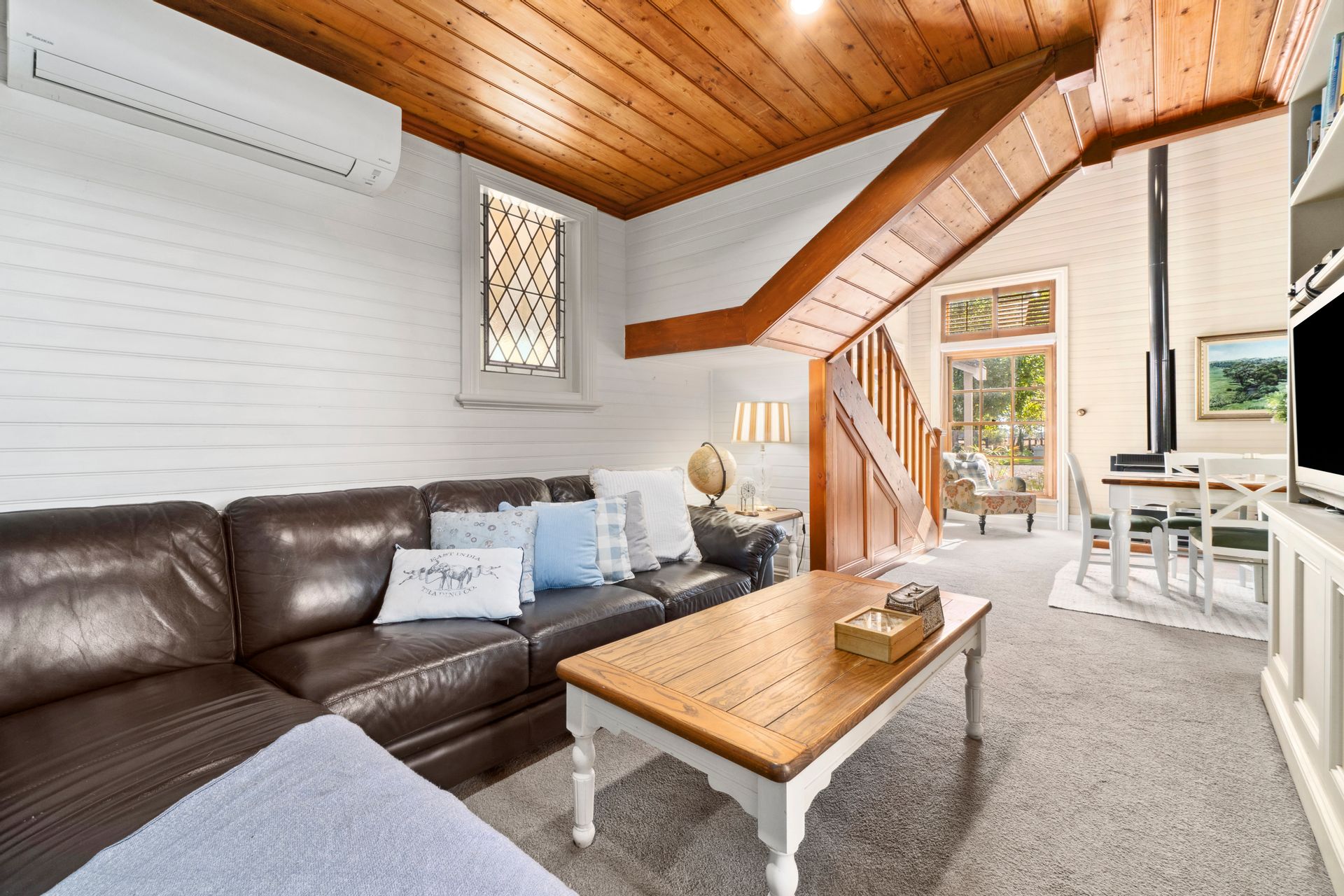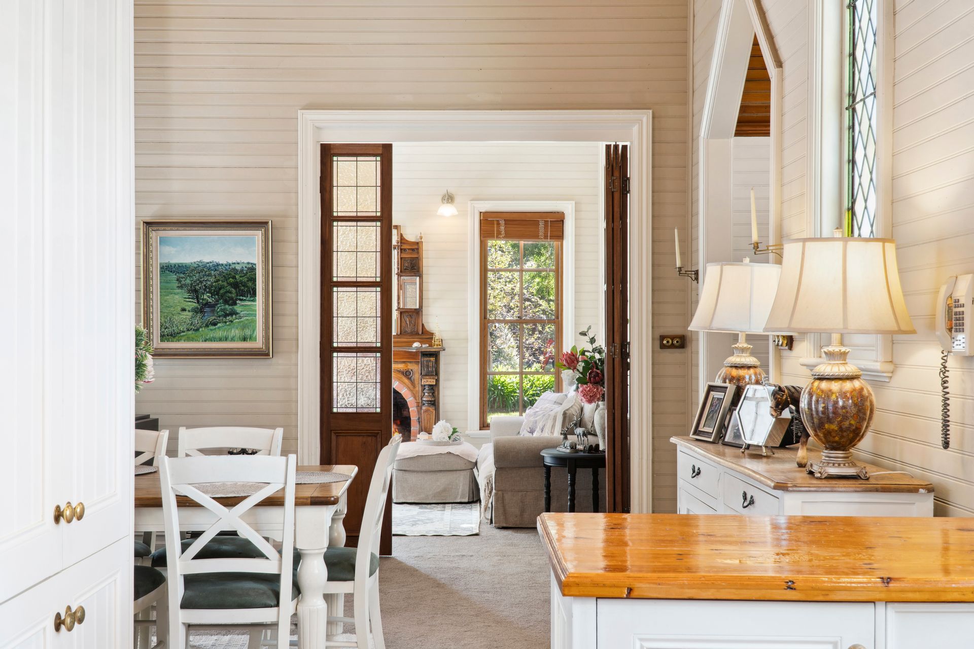 The kitchen, living and dining area is the perfect hub for the family to come together. The kitchen comes with modern appliances, yet keeps the country feel with its wooden bench tops, white cabinetry and plenty of storage space.
