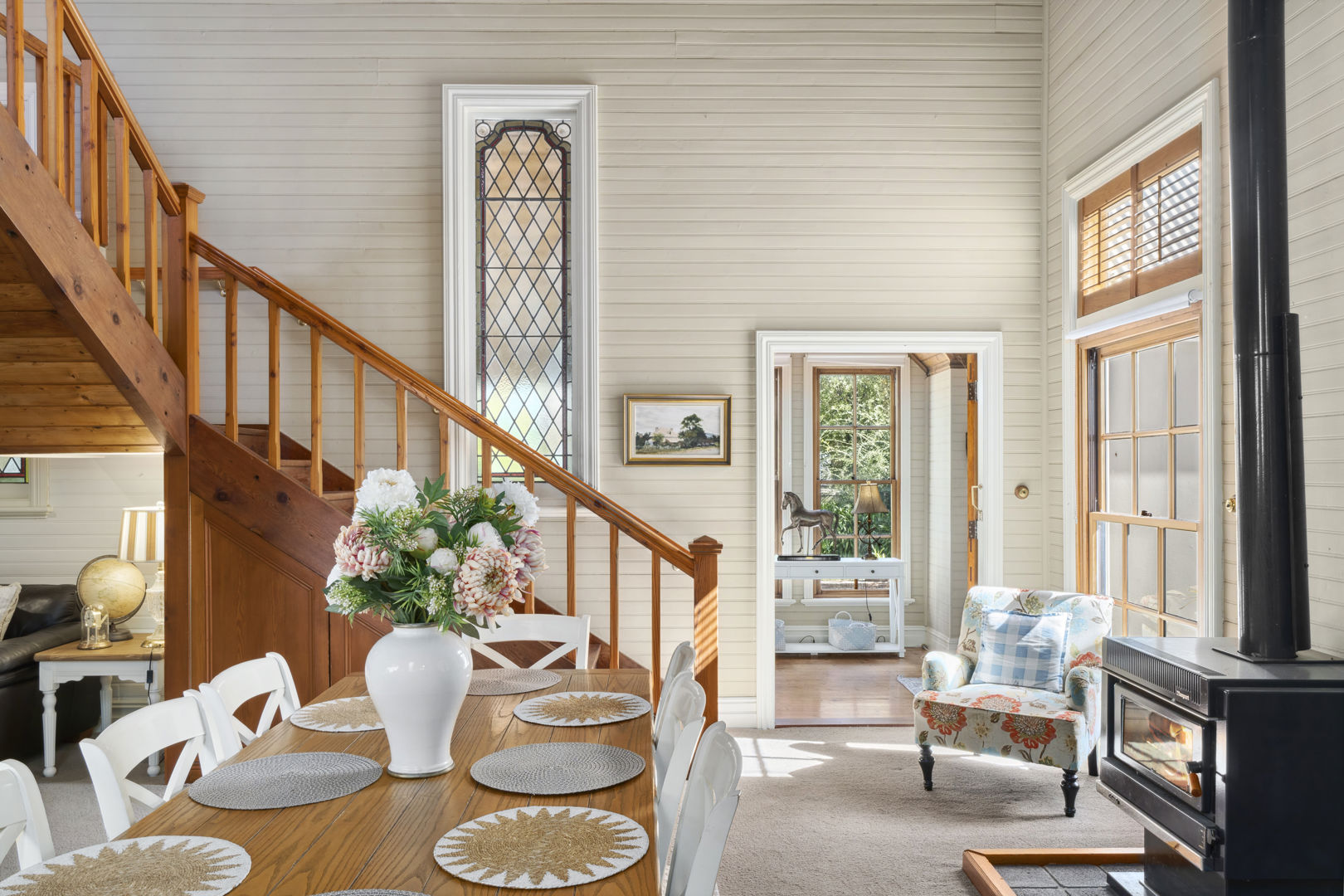The kitchen, living and dining area is the perfect hub for the family to come together. The kitchen comes with modern appliances, yet keeps the country feel with its wooden bench tops, white cabinetry and plenty of storage space.
