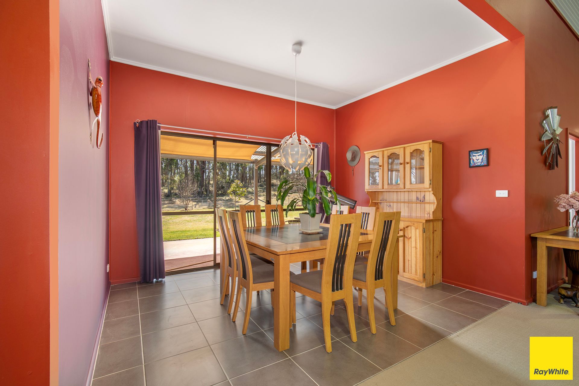 The open-plan kitchen with gas cooking overlooks the living space, making entertaining effortless, while the dining area spills through sliding doors onto a north-facing covered verandah, the perfect spot to watch the bushland come alive with native birds and golden afternoon light.