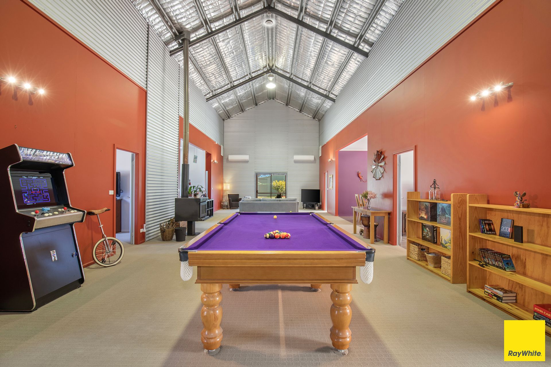 At the heart of the home lies a breathtaking 16m x 6m central living area, a place to gather, warmed by the glow of a grand wood burner and cooled by twin Daikin air systems.