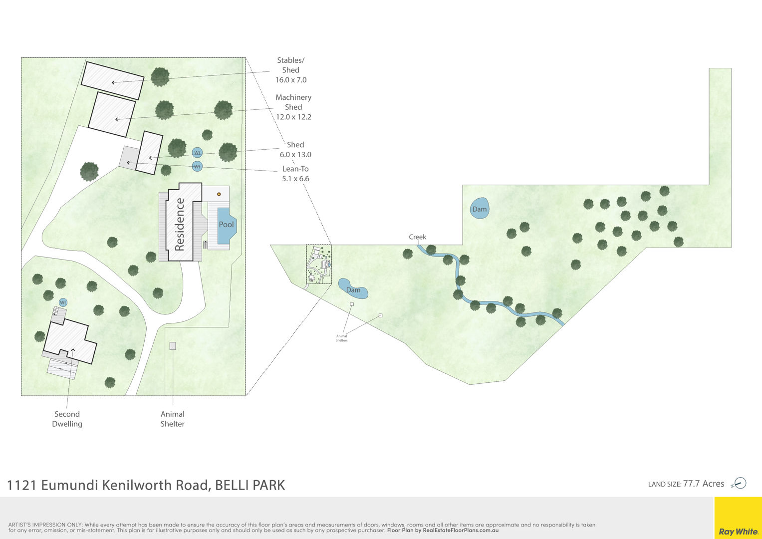 • Water security is outstanding with six dams, a bore with underground piping throughout, and two spring-fed creeks, including Belli Creek.