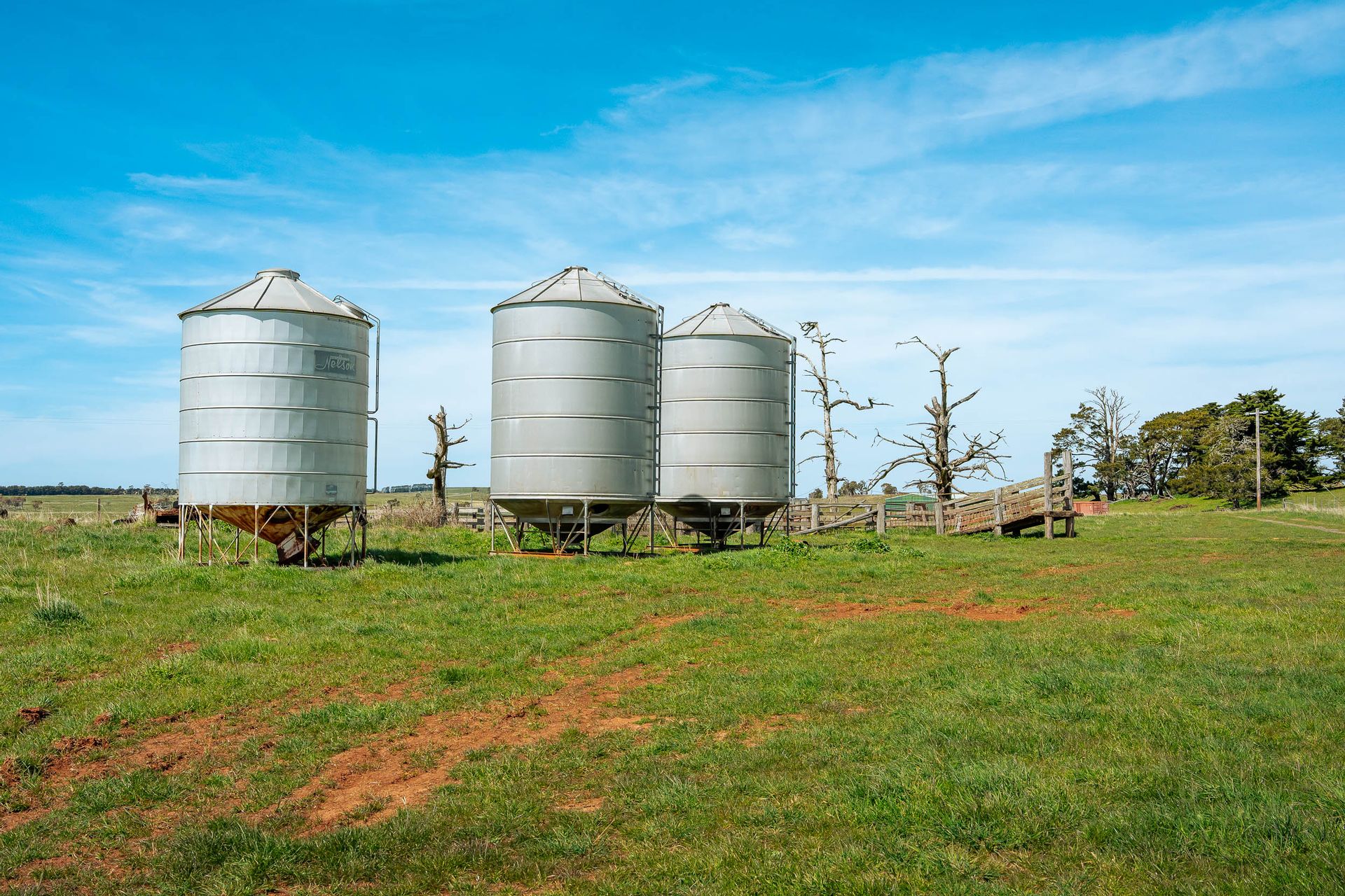Beyond its heritage, the property delivers genuine farming scale. Two substantial structural steel sheds (not kit sheds) provide robust storage and utility, including a 25m x 15m shed with a full-length steel gantry and a 30m x 12m shed with a concrete slab floor. Further infrastructure includes steel/timber cattle yards with crush, three cone-bottom silos, and an original shearing shed, making the property well set-up for grazing or mixed farming.