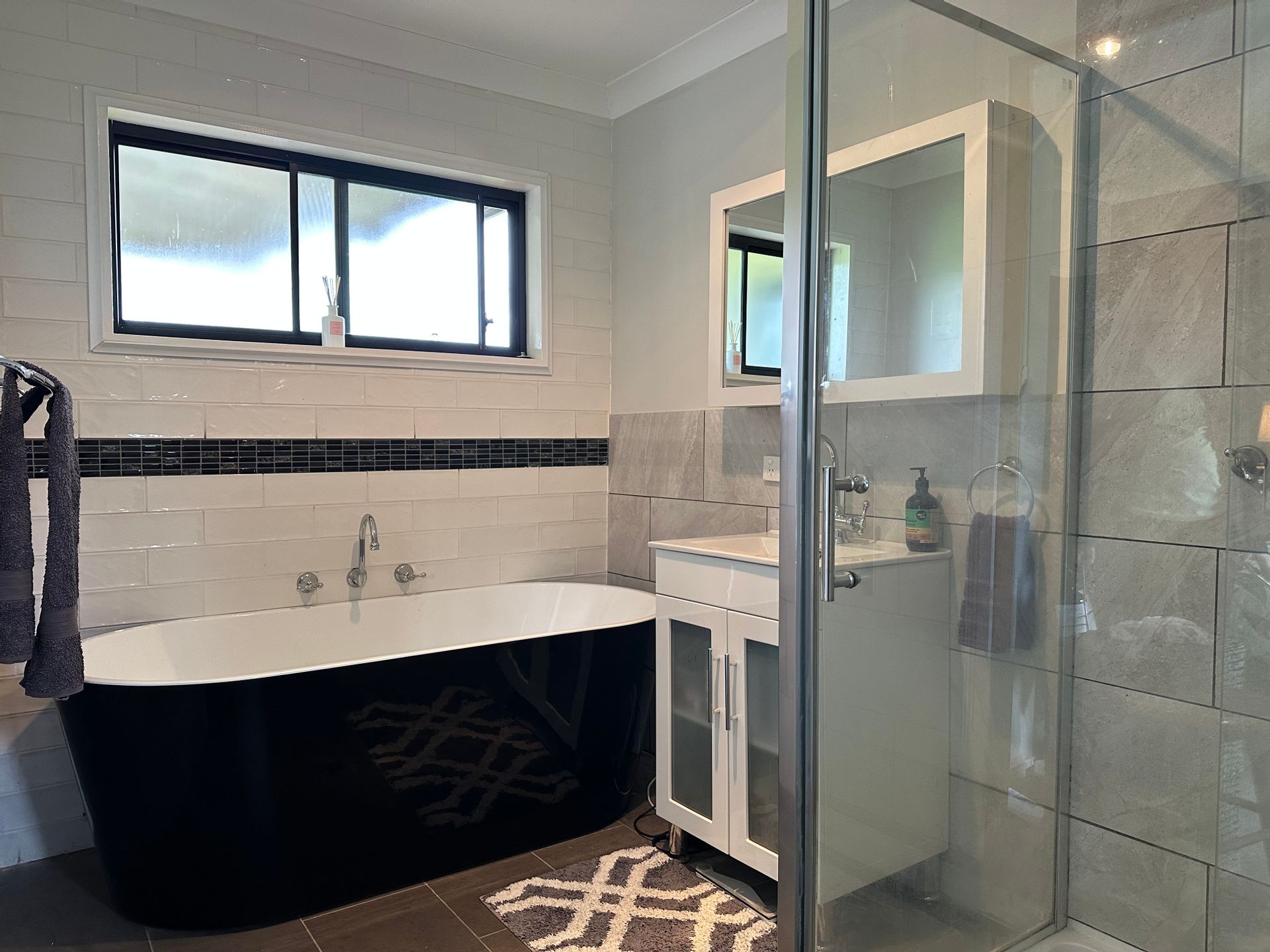 • Modern bathroom with separate shower and deep bath