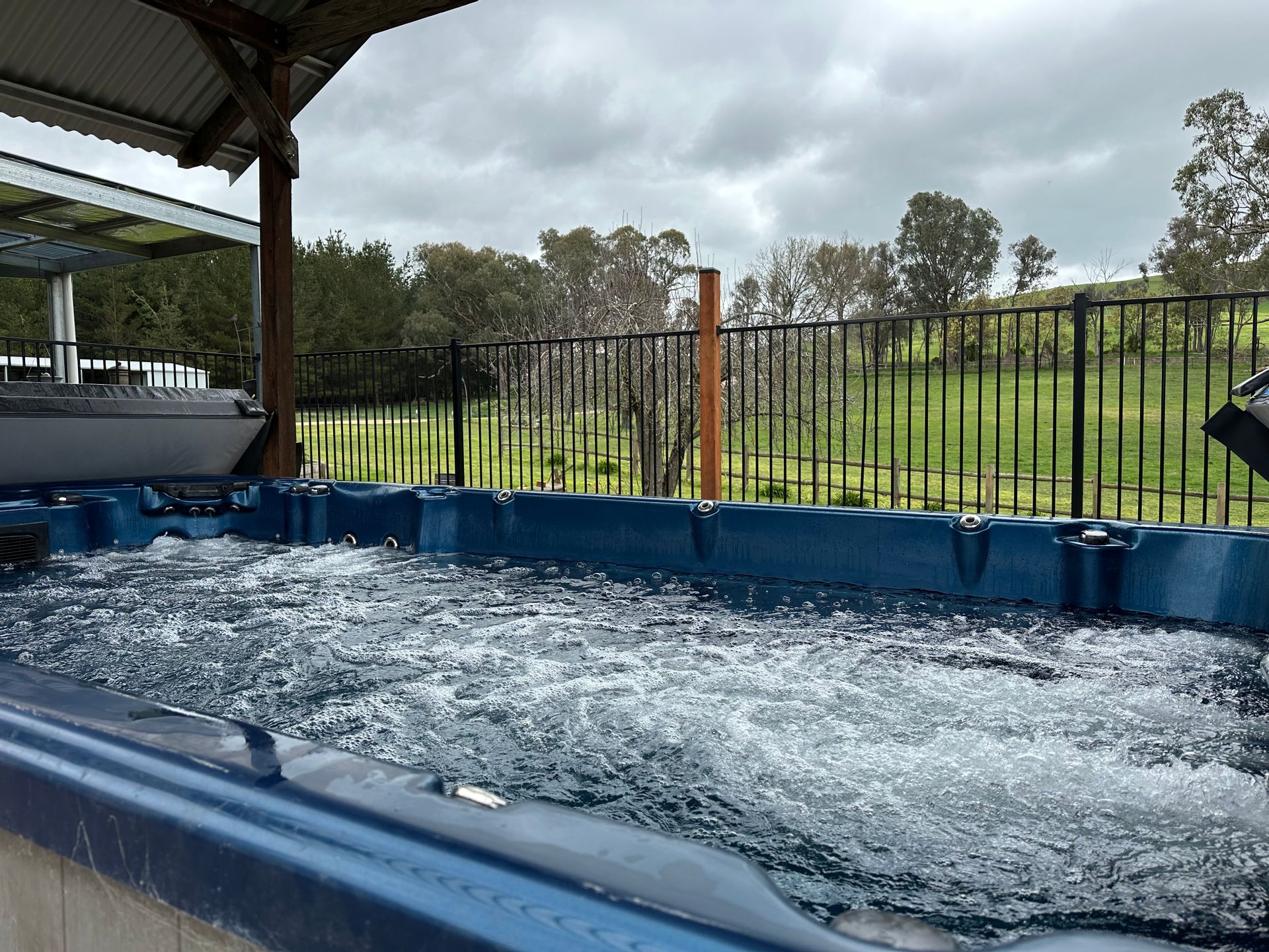 • Swim spa set under a covered pergola - the perfect retreat after a long day