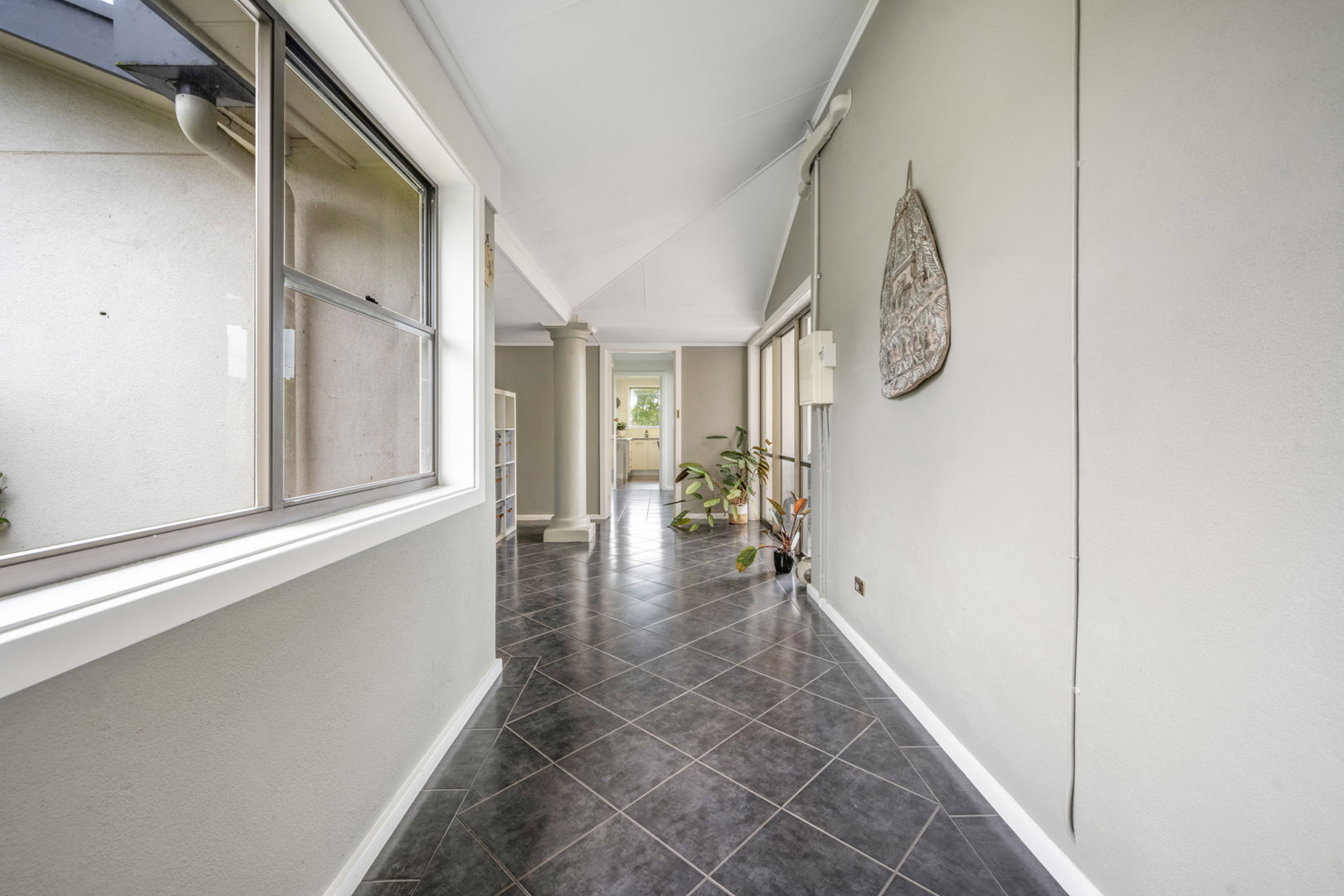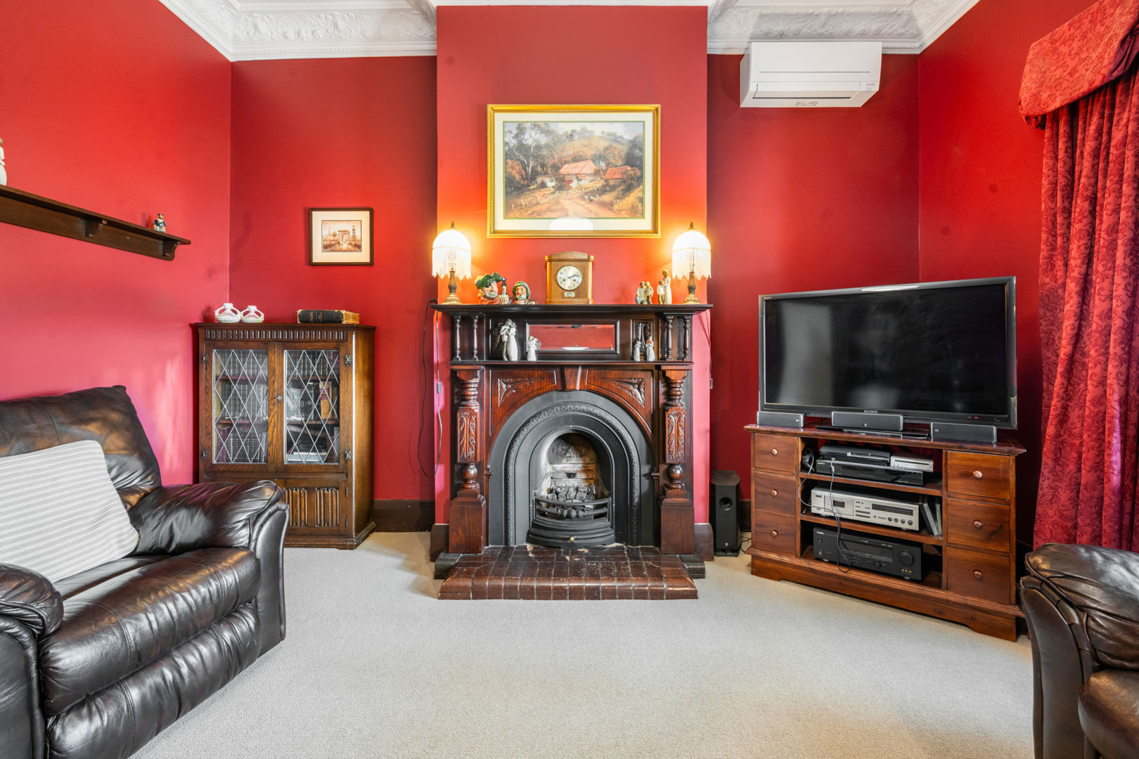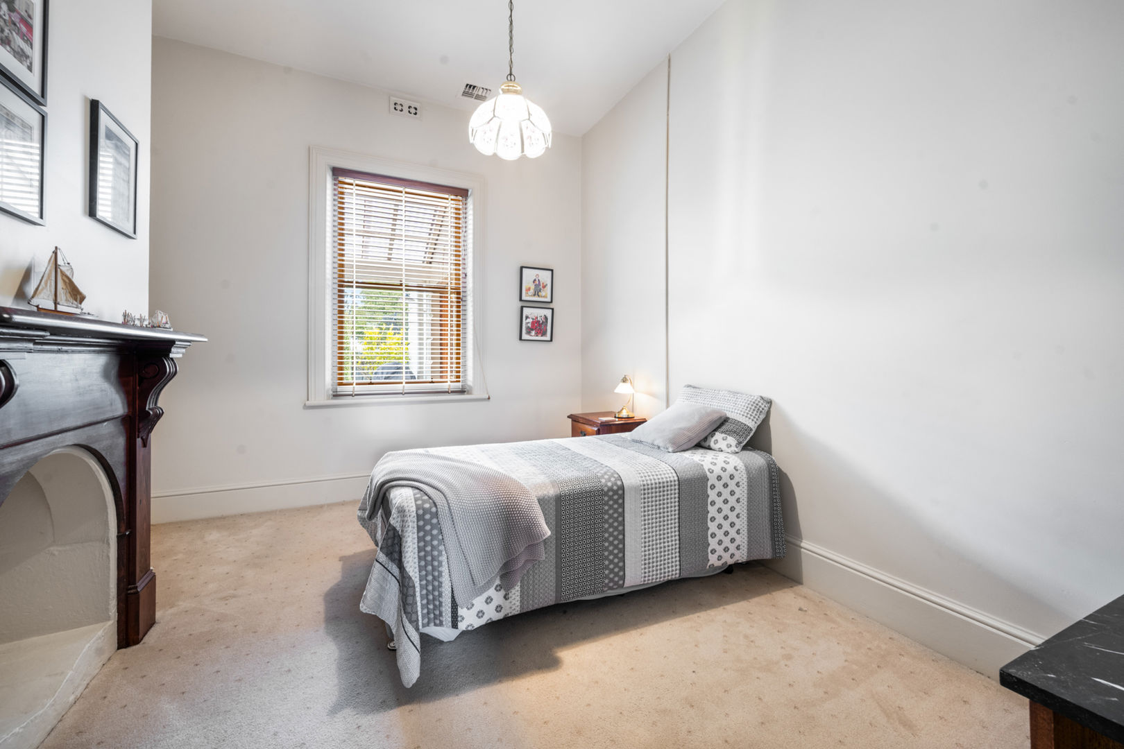 Set privately back from the road, the 1890s Mount Gambier stone homestead has been carefully renovated to blend period charm with modern comfort. The home features four bedrooms, two bathrooms, and multiple living areas centred around a wide central hallway with decorative archway. Each bedroom includes an ornate fireplace and mantel, with built-in cupboards to three rooms, the master suite offers a walk-in robe and ensuite with underfloor heating, heated towel rail, and walk-in shower.