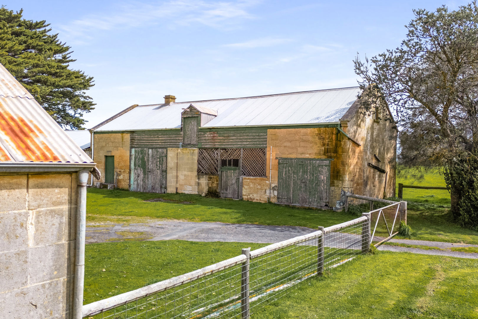 The rural lifestyle potential of this property is exceptional. Land is divided into six paddocks with lucerne and grazing areas, concrete troughs, and steel cattle yards with crush. Outbuildings include a large two-storey stone barn, implement shed, powered shearing shed, stone vehicle shed, hay shed, and a disused dairy with steel yards. An established orchard, vegetable plot, enclosed chook yard, and extensive native gardens complete the lifestyle offering, making this property perfect for those seeking both productivity and privacy.