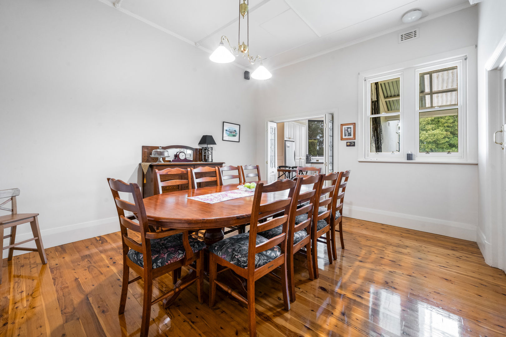 Generous living spaces include a formal lounge with bay window, coloured leadlight, and LPG coal fire, alongside a large dining room connecting to the 2021 upgraded kitchen. The kitchen boasts granite benchtops, Belling cooking range with six gas burners and multiple ovens, Miele dishwasher, Schweigen rangehood, and French doors opening to a timber deck ideal for entertaining. Polished cedar floors flow through the kitchen and dining areas, resanded and sealed in 2025. A renovated bathroom, spacious laundry with second toilet, and enclosed rear verandah provide practicality for family living. Modern comforts include reverse cycle air conditioning, LPG ducted heating, solar hot water, and a 40-panel solar array.