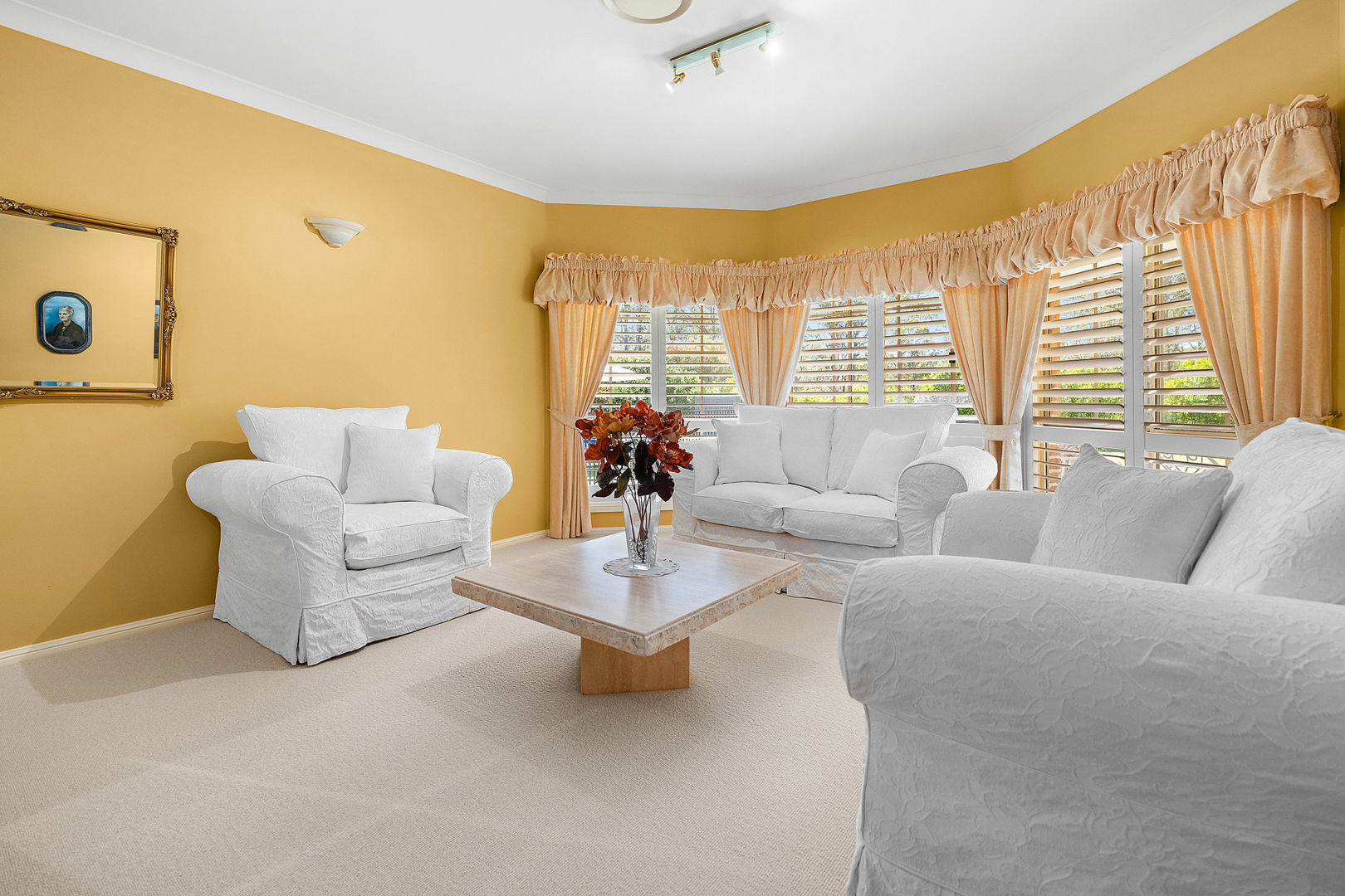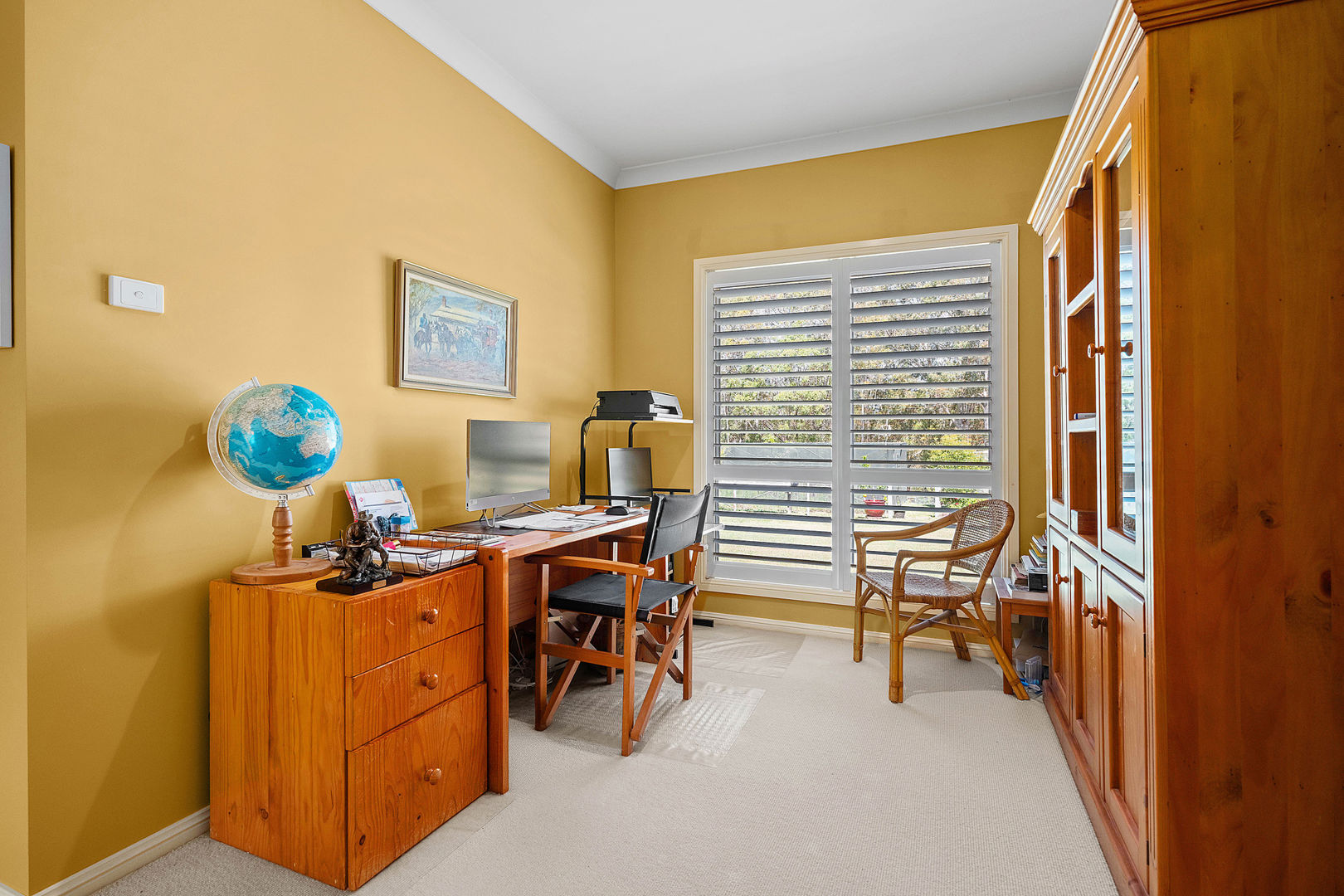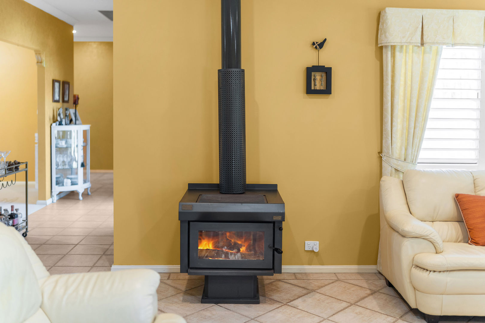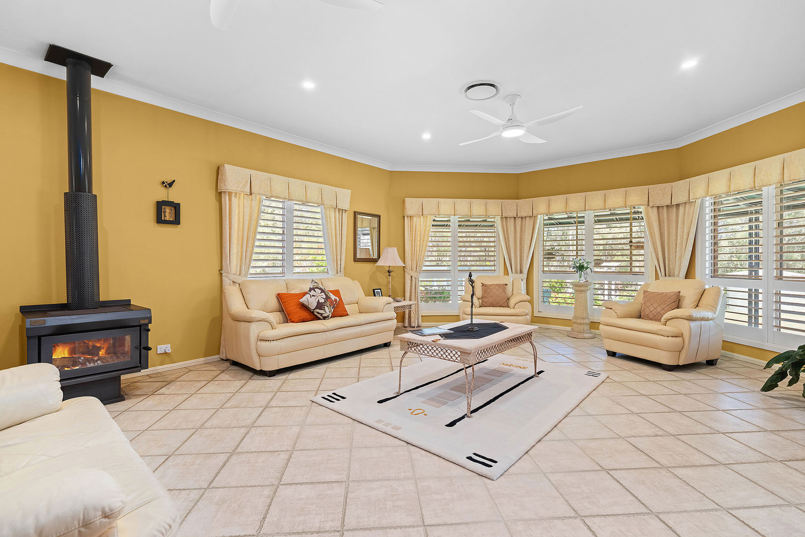 Built in 2000 and spanning a generous 376sqm, the home pairs space and serenity with modern comfort and country warmth. Four spacious bedrooms, two bathrooms, and multiple living and dining zones offer flexibility for families. The main bedroom, complete with ensuite and walk-in robe, enjoys its own wing alongside an office creating a peaceful retreat that's beautifully separated from the remaining accommodation for extra privacy and quiet. Spacious and practical kitchen boasting ample storage with sleek white cabinetry, modern stainless-steel appliances, and a central island bench perfect for meal prep or entertaining. The large window allows for plenty of natural light, complemented by warm tones and tiled flooring for a welcoming, functional design. Corner baths in main bathroom and ensuite, ducted air-conditioning, a cosy fireplace, ceiling fans throughout whole home and a full security system with front gate sensor ensure comfort and peace of mind.