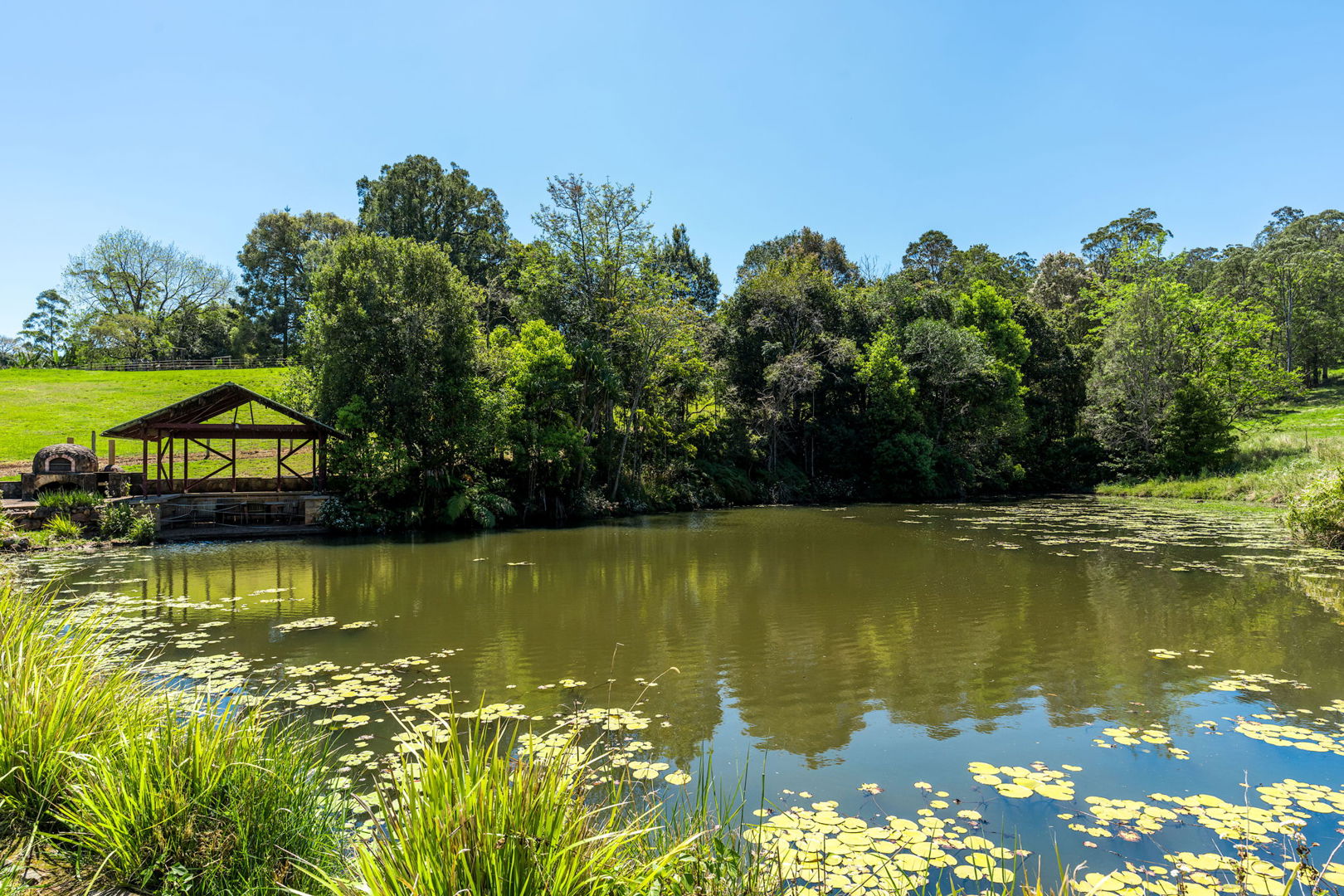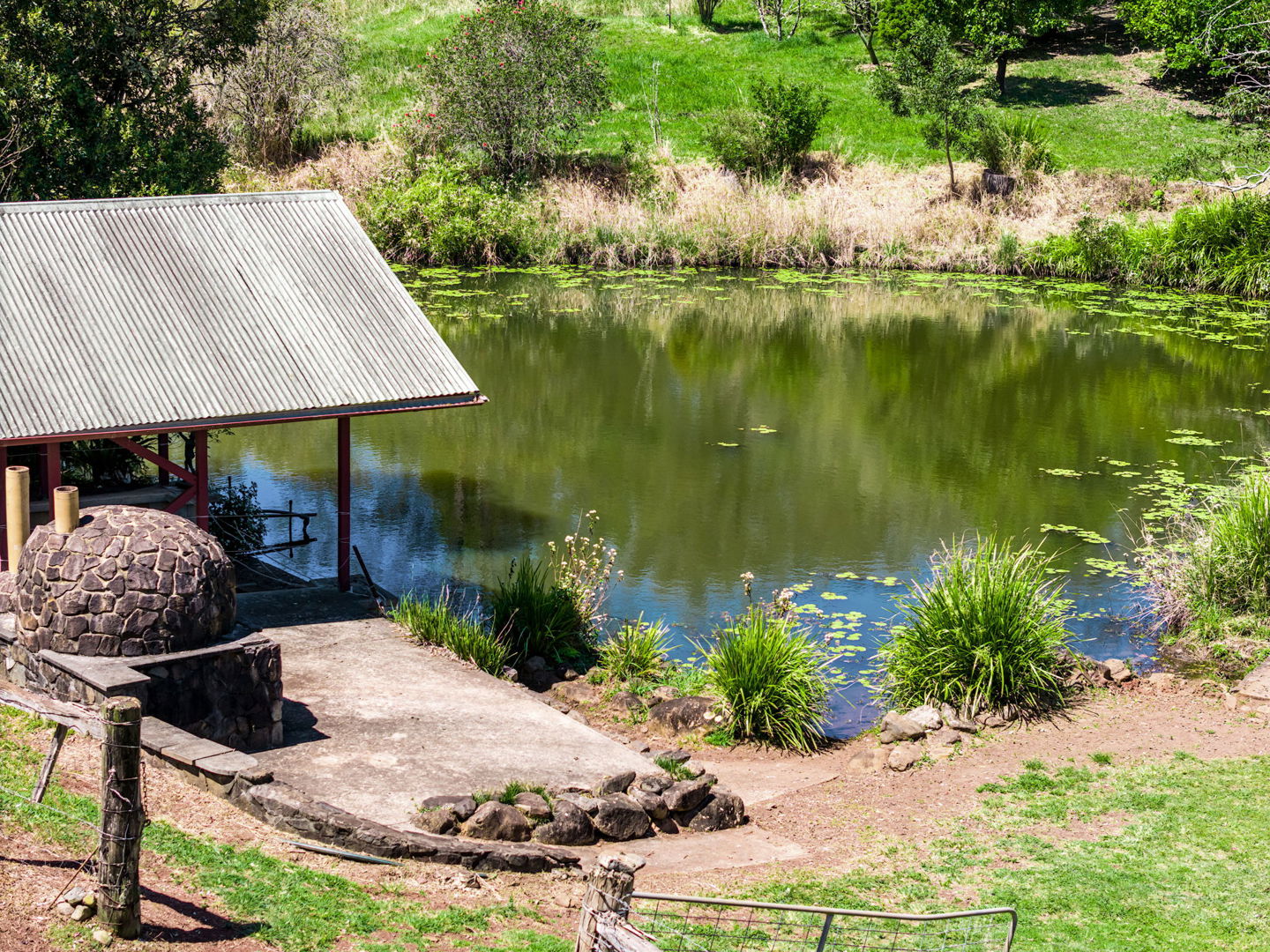 SEPARATE LODGINGS: The point of difference in this and other similar properties is the not one, but TWO one-bedroom Farm stay lodgings, both self-contained. One close cottage and one remote from the main home, these beautiful, light and airy ‘homes away from home’ provide an excellent return from tourism. All three residences have access to an ambient entertaining area with BBQ and pizza oven overlooking a tranquil lily-lined spring fed dam.