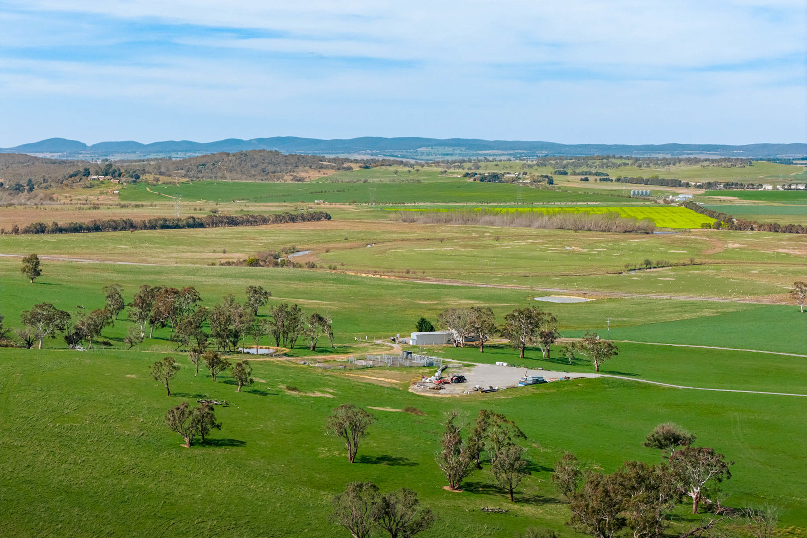 Water security is a standout feature, with Mulwaree River frontage, a seasonal creek, 17 dams, and a 10-megalitre commercial bore licence. Infrastructure includes an American barn with garaging, workshop, and two-bedroom living quarters/office, a four-bay machinery shed, and brand-new steel cattle yards. Elevated house sites provide scope for a future residence with commanding views over Goulburn City and One Raceway.