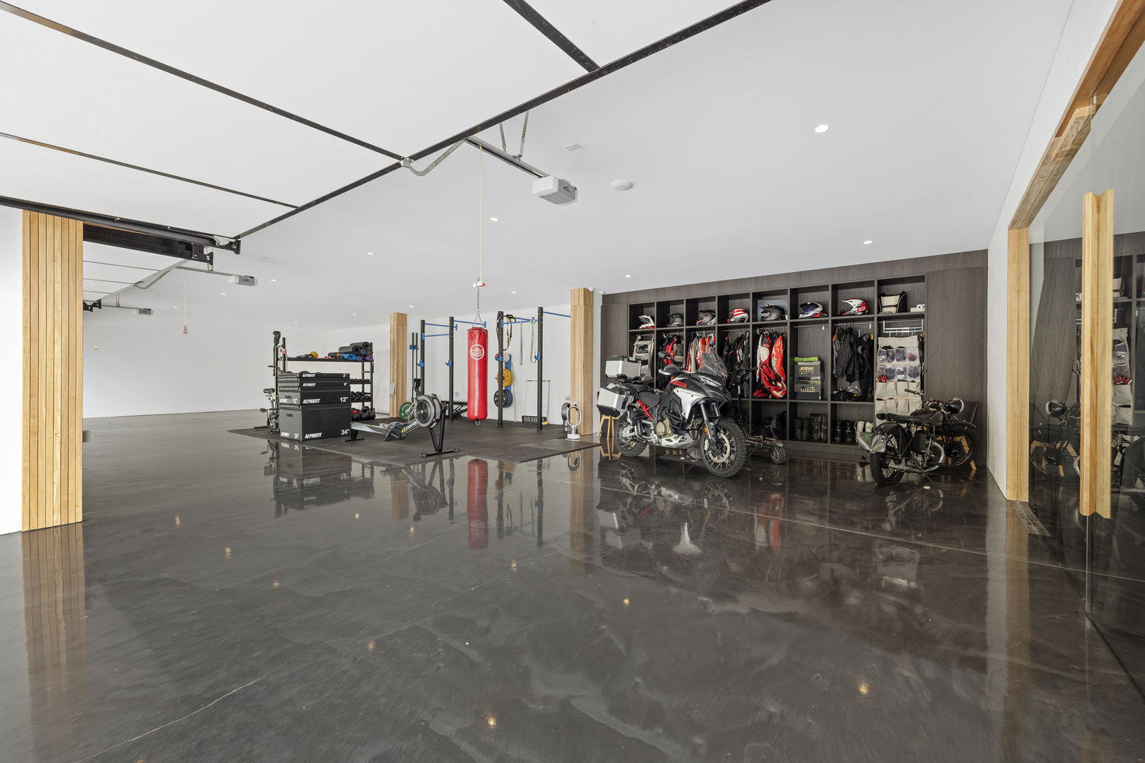 The colossal twelve car garage has automated doors, a sleek design and room for all the cars, bikes and toys. It also comprises a gym with elite machines and boxing station where you can work up a sweat before some Pavilion pampering. There's also a huge home cinema with projector, surround sound and a commercial coolroom and laundry.