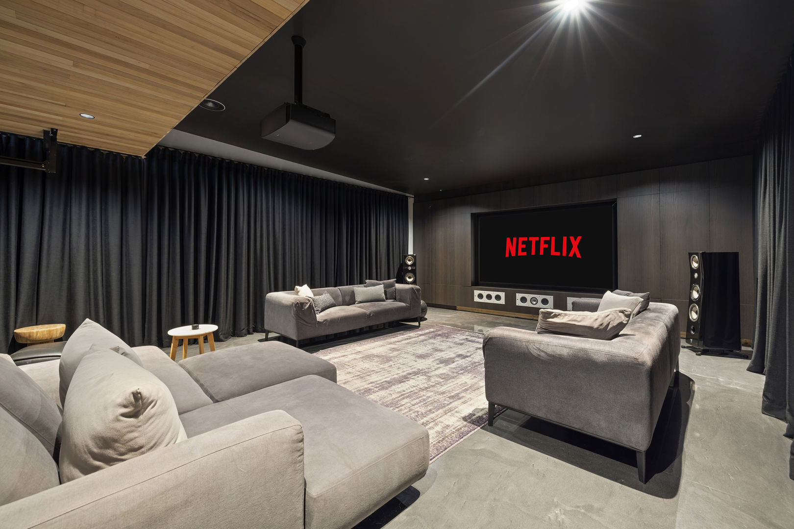 The colossal twelve car garage has automated doors, a sleek design and room for all the cars, bikes and toys. It also comprises a gym with elite machines and boxing station where you can work up a sweat before some Pavilion pampering. There's also a huge home cinema with projector, surround sound and a commercial coolroom and laundry.
