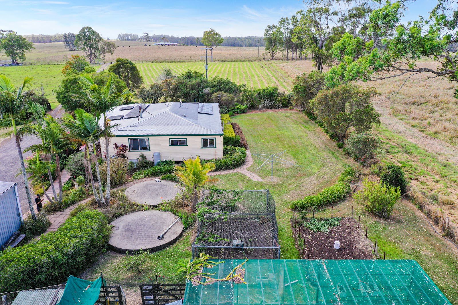 The home is serviced by 2 x 40,000 LT concrete water tanks, a greenhouse, established veggie gardens, chicken coop and stable – sustainable living at its best!