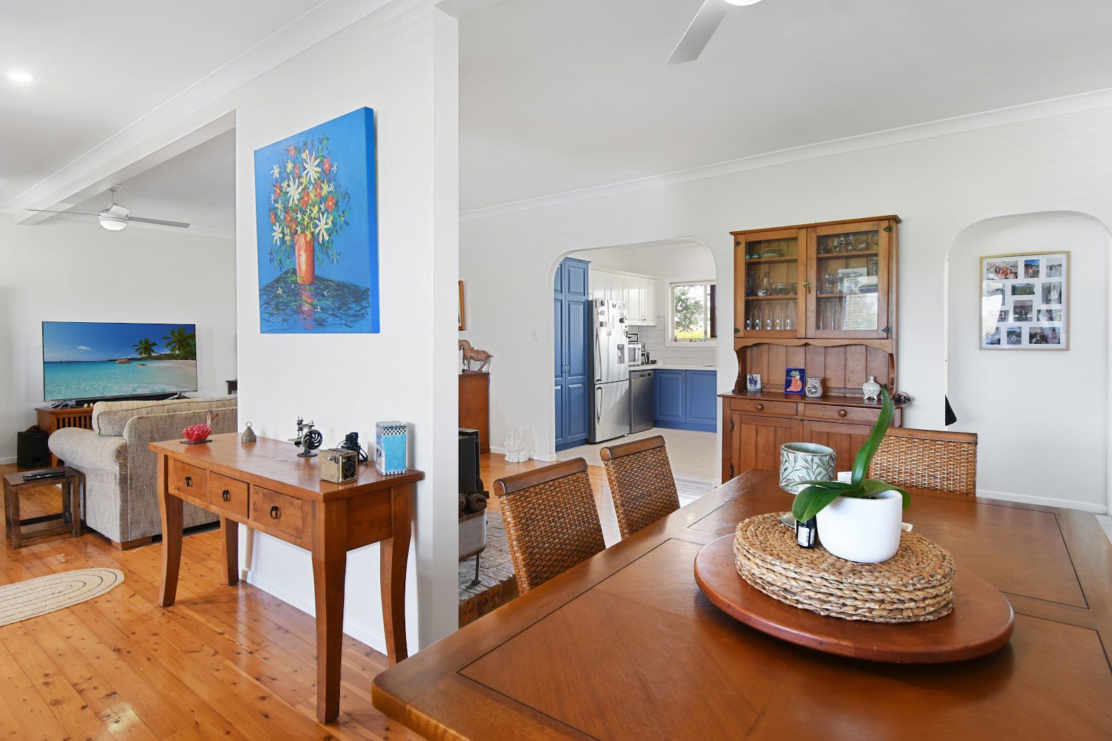 • Open plan living and dining with beautiful polished timber floors. Screen doors front and back along with flyscreens on the windows.