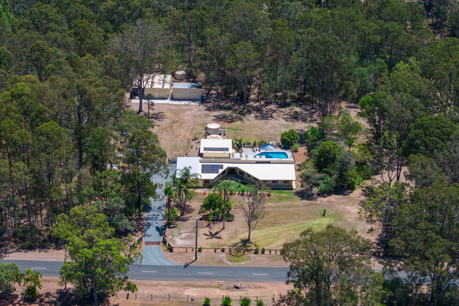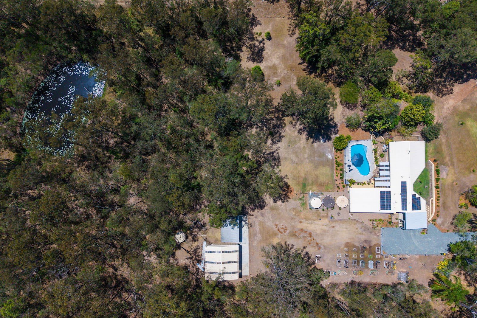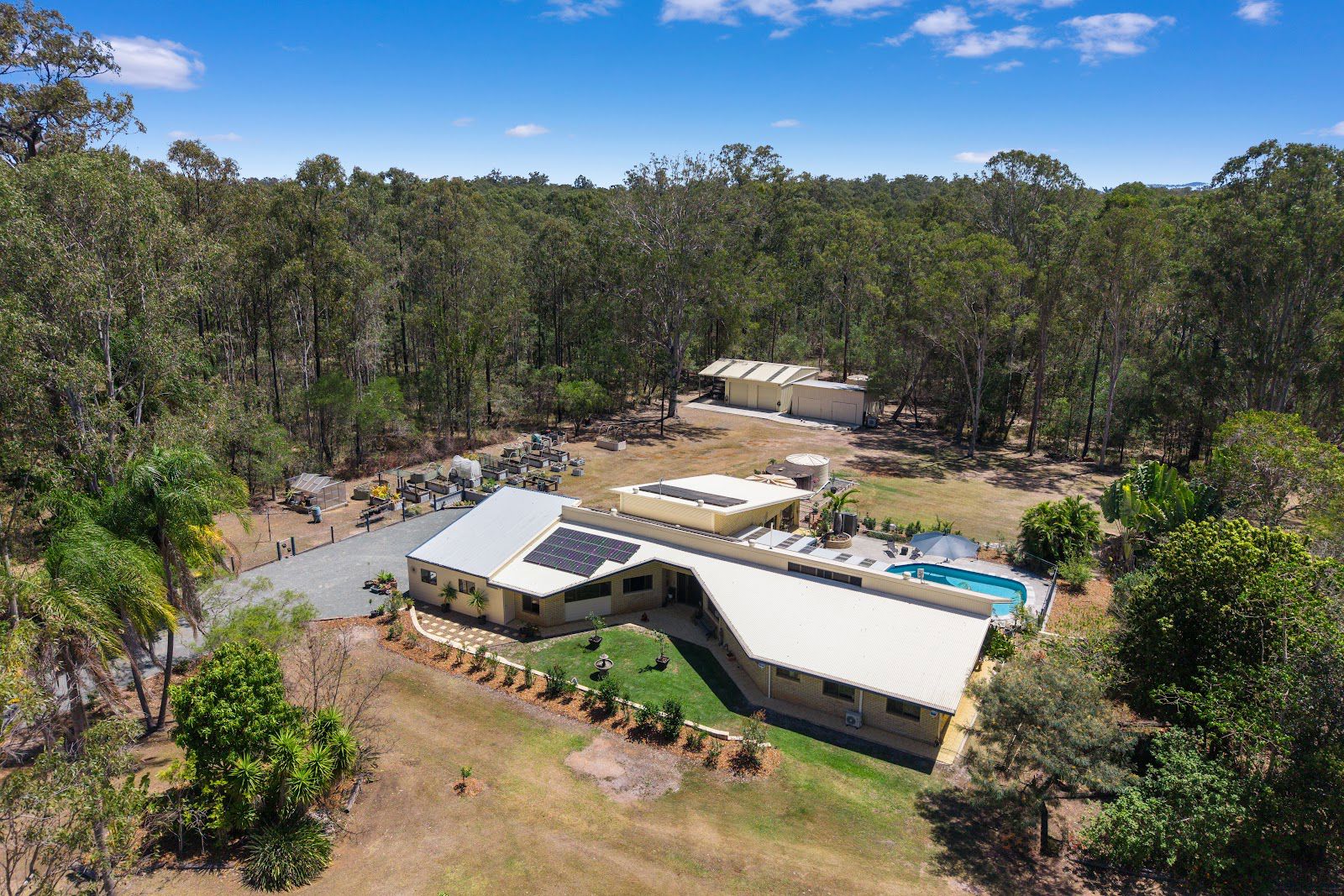 Off-Grid Ready – 30 solar panels with 19.2 KW battery, bore water with filtration, a dam, and over 100,000L of freshwater tanks.