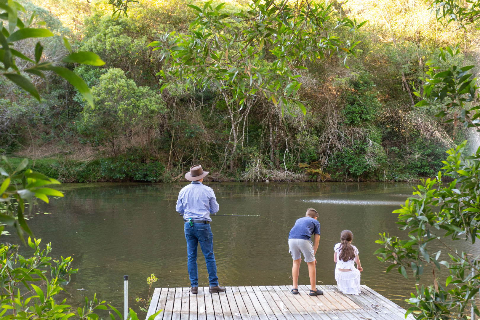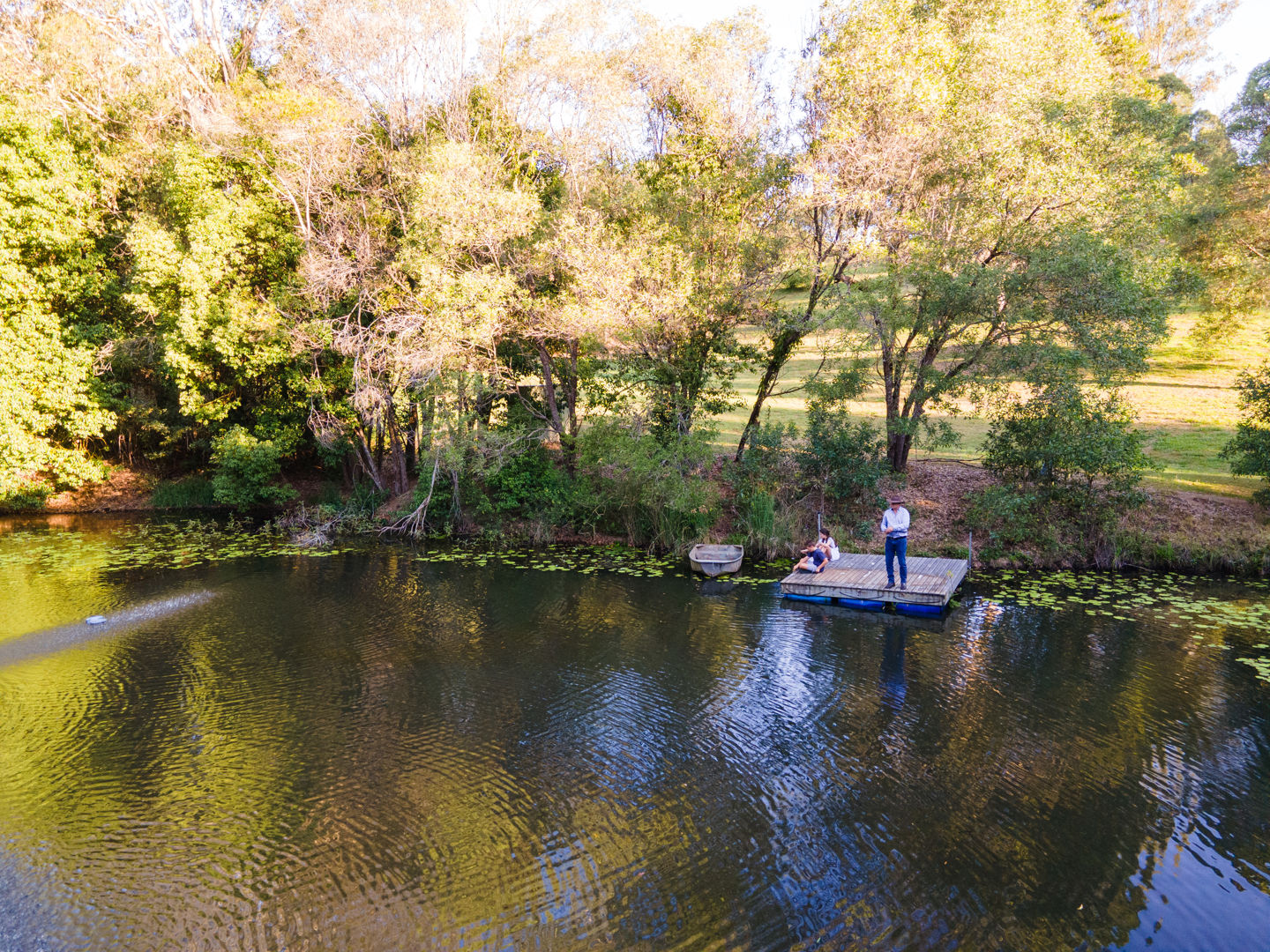 • Large dam with pump and aerator stocked with fish and floating pontoon - great for kayaking and fishing