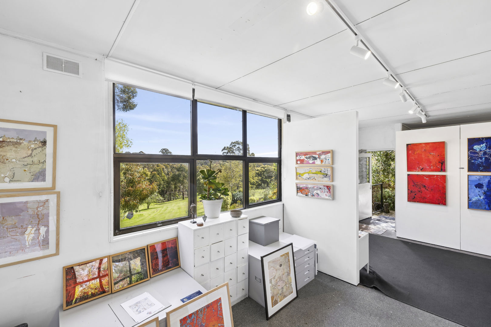 Designed for comfort and lifestyle flexibility, the property features 2 generous sized bedrooms with BIR, plus 1 smaller bedroom suitable for home office, en-suite off of primary bedroom and central bathroom, workshop, and studio, making it ideal for a variety of living and working arrangements.