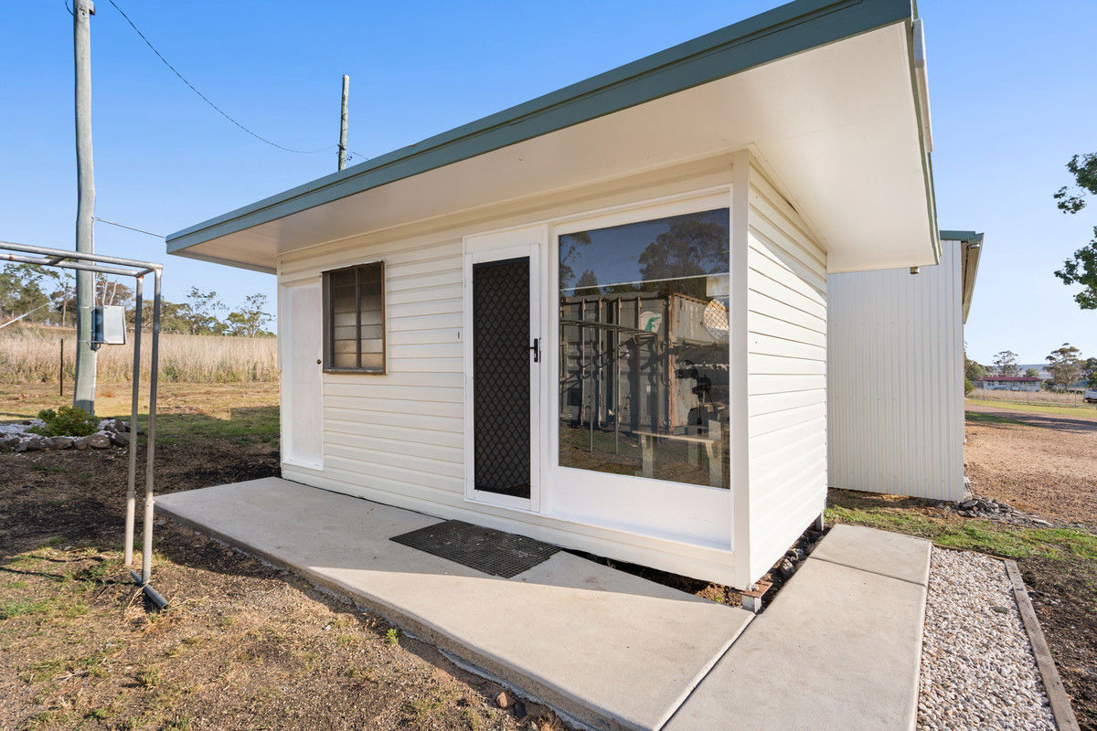 The land is well fenced and divided into three paddocks, with an operating bore connected to a tank at the house supplying a trough in one paddock for easy stock watering. A large shed with single-phase power includes two open bays and two lock-up bays with roller doors — ideal for machinery, trailers, or a workshop.