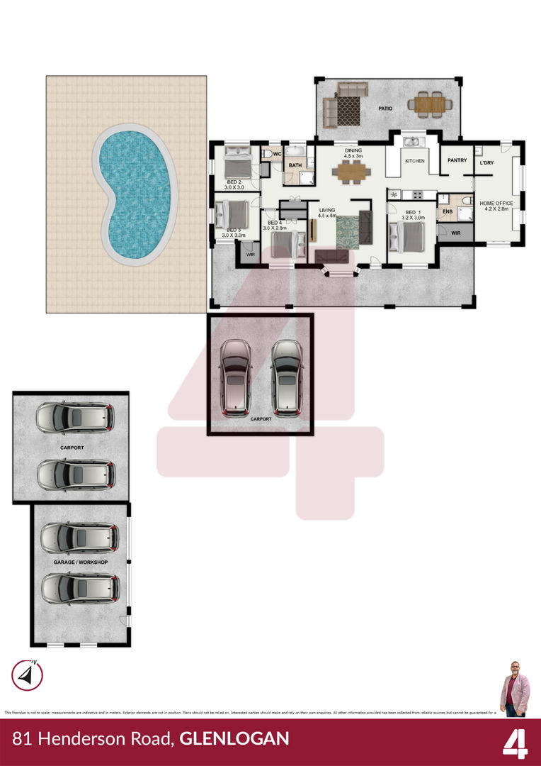 Whilst all care and attention has been taken to ensure that the information contained in the above advertisement is true and correct at the time of publication, 4 Real Estate gives no warranty or assurance and makes no representation as to the accuracy or reliability of the information contained. It is advised that any prospective purchaser make their own enquiries and/or inspection prior to purchase.