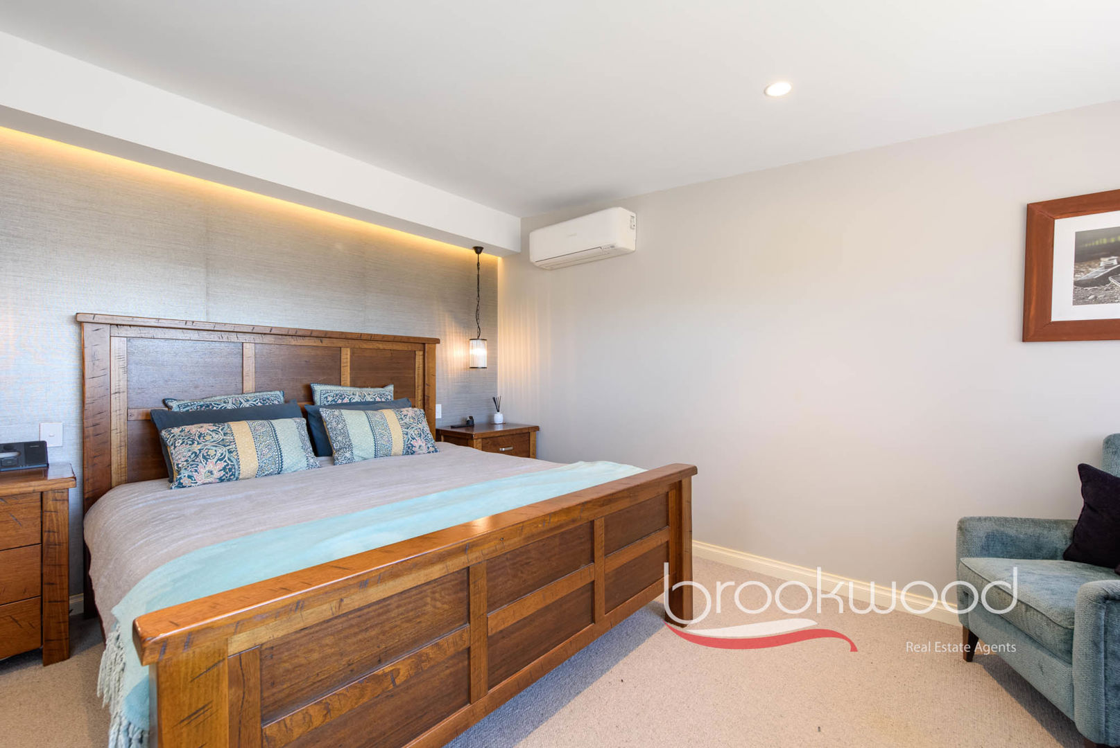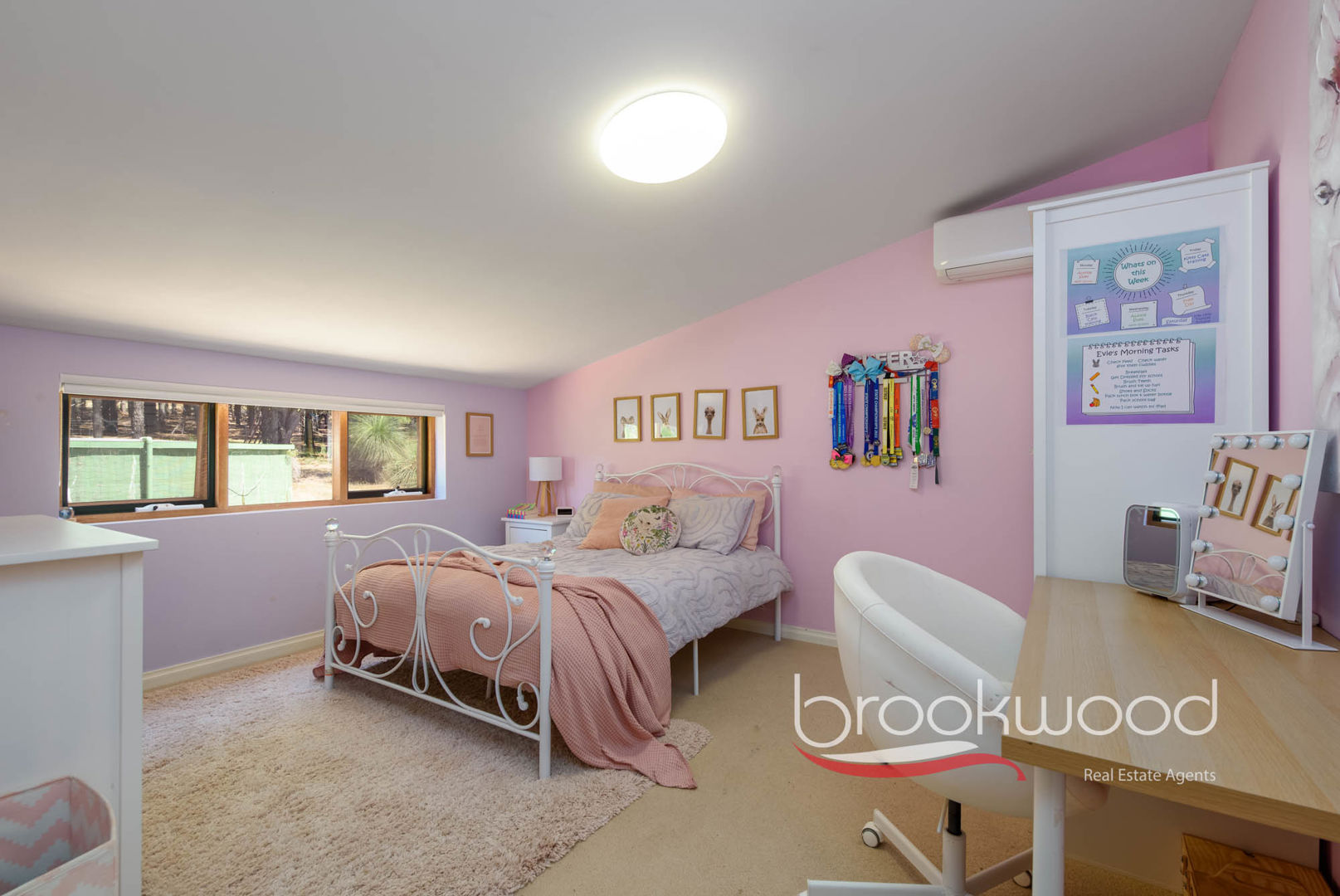 Upstairs becomes a sanctuary. A second living room with warm pine floors opens to a spectacular balcony with café blinds – imagine, morning coffee watching the sunrise, afternoons lost in books, quiet drinks as the working week releases its grip. Along a central hall, three double bedrooms – each with split-system air conditioning and plush carpet – provide comfortable quarters for younger family members. The principal suite claims the northern corner as a true parents' retreat. Plush carpet, split-system air conditioning, an east-facing window with blackout blinds, a walk-in robe and a contemporary ensuite complete with a shower positioned to capture those same extraordinary views – this is a space that acknowledges the parents deserve pampering too.