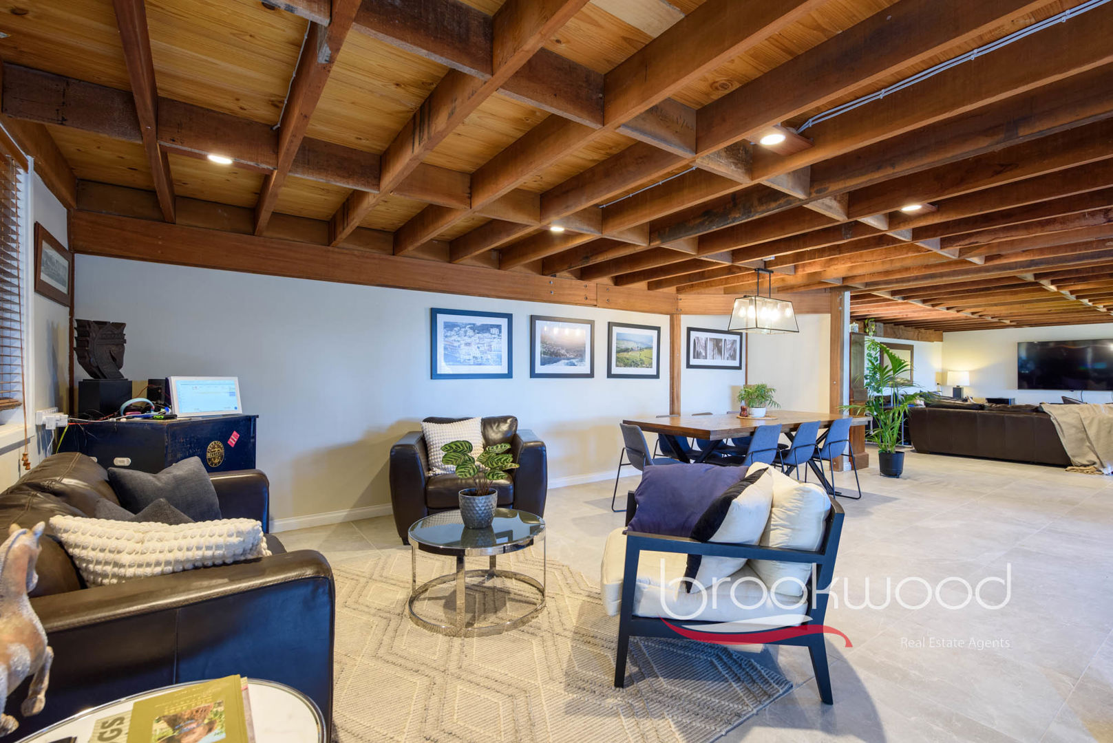 Outdoor spaces emphasise the setting's singular allure, with a large, sheltered deck and screened patio extending from the front of the home's ground floor. The current owners have styled the patio as an outdoor games room, though it has the potential to be a stunning outdoor kitchen. These spaces multiply the home's capacity for gathering, for celebration, for the simple pleasure of being together outdoors.
