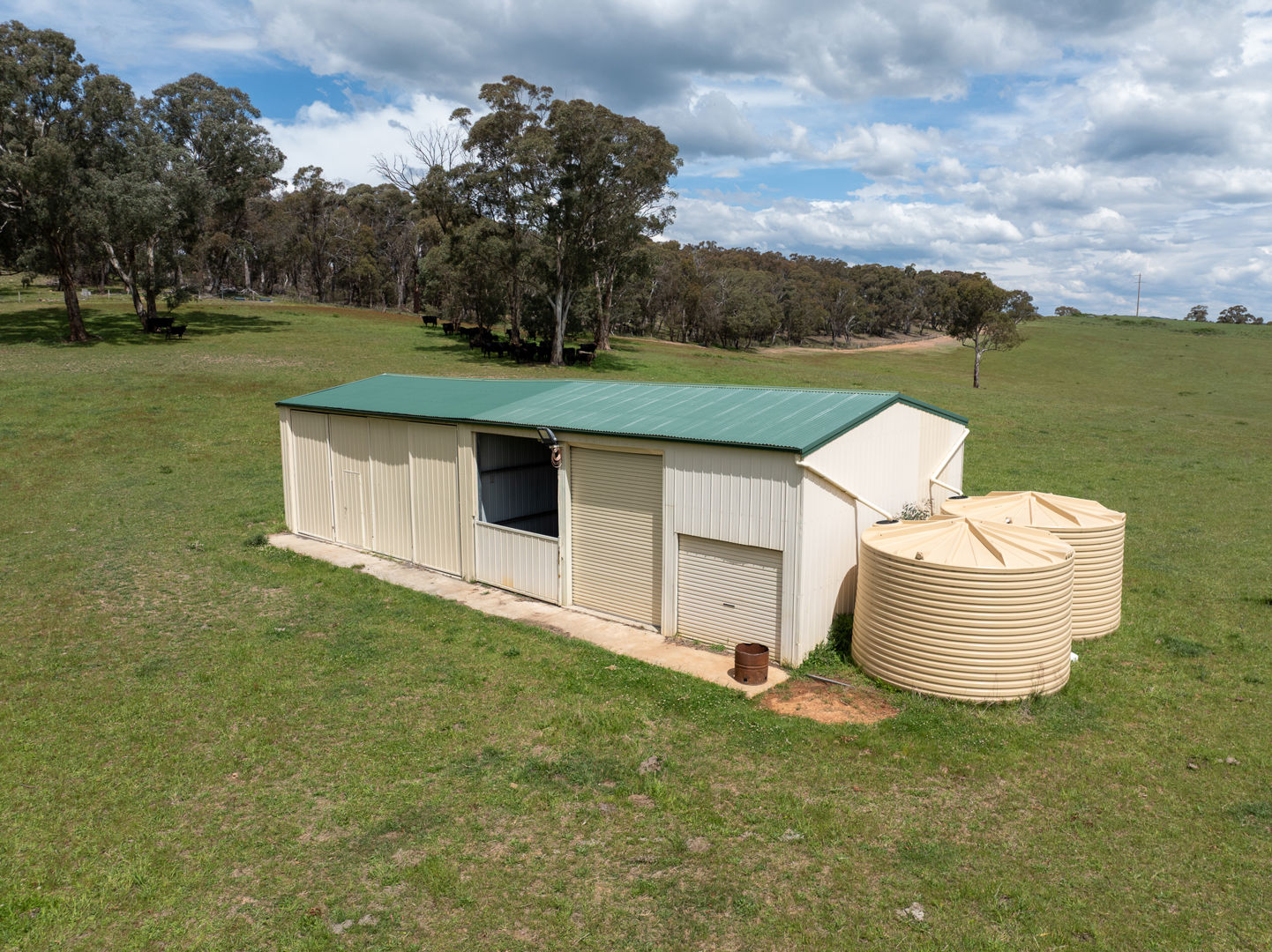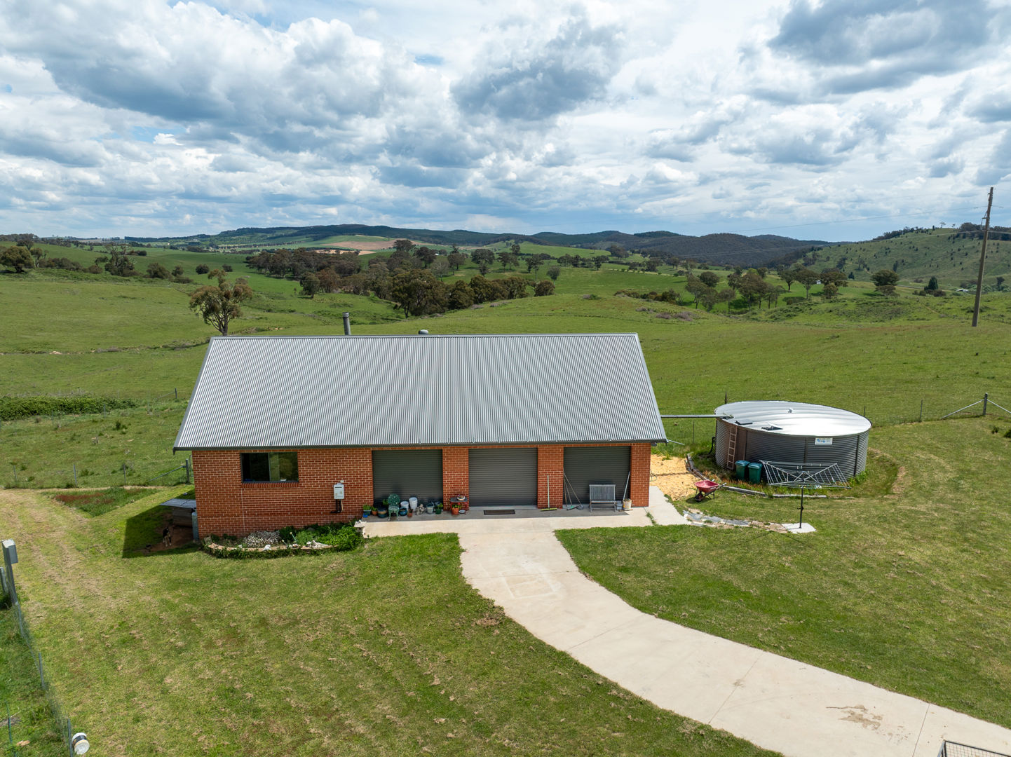 • A 75000*L steel tank off the home, and two 22500*L poly tanks off the shed supply ample rainwater storage.