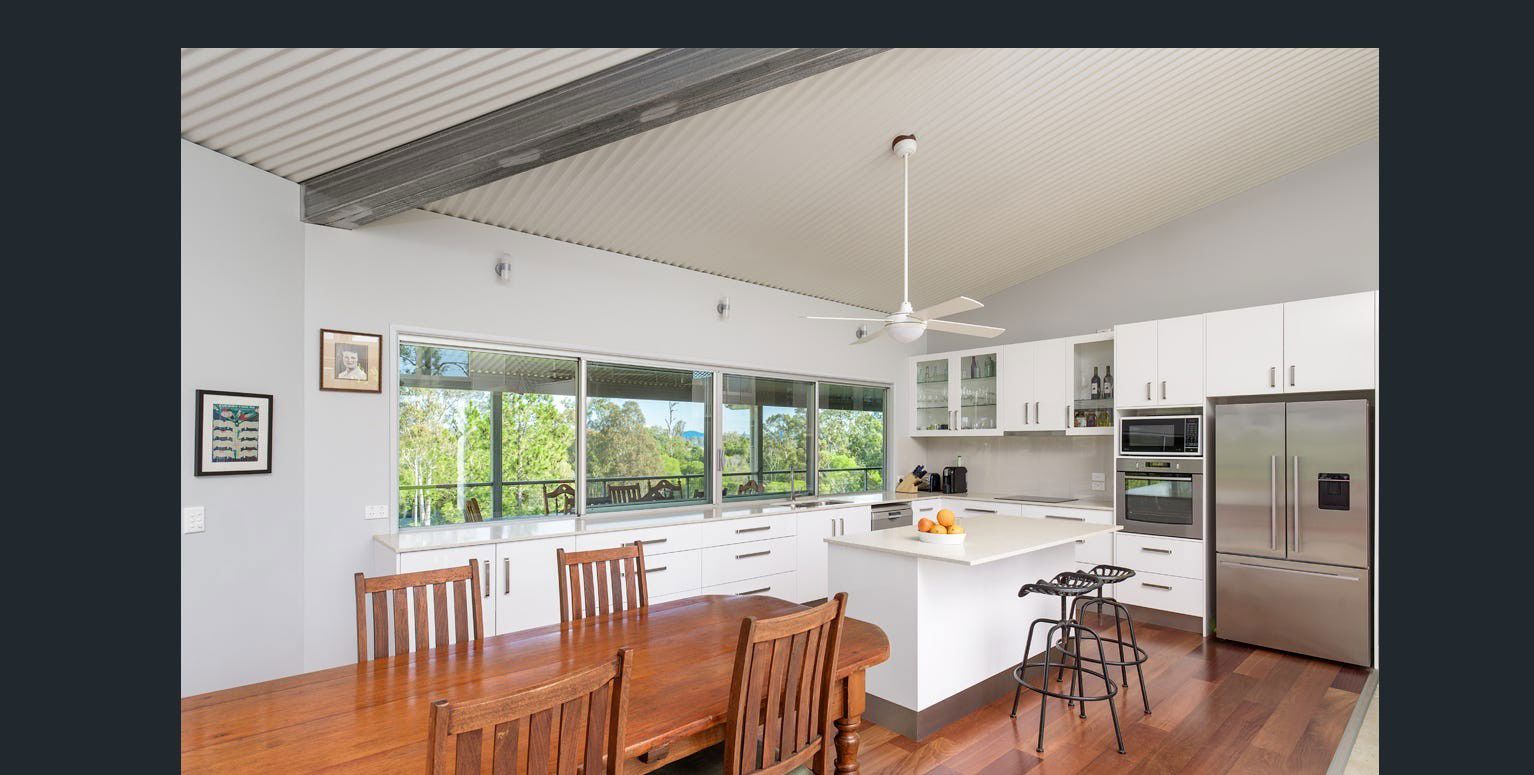 Located in the tightly held hinterland between Pomona and Cooroy, just 30 minutes from Noosa, this remarkable 92-acre property offers permanent creek frontage, productive pasture and architect-designed living.