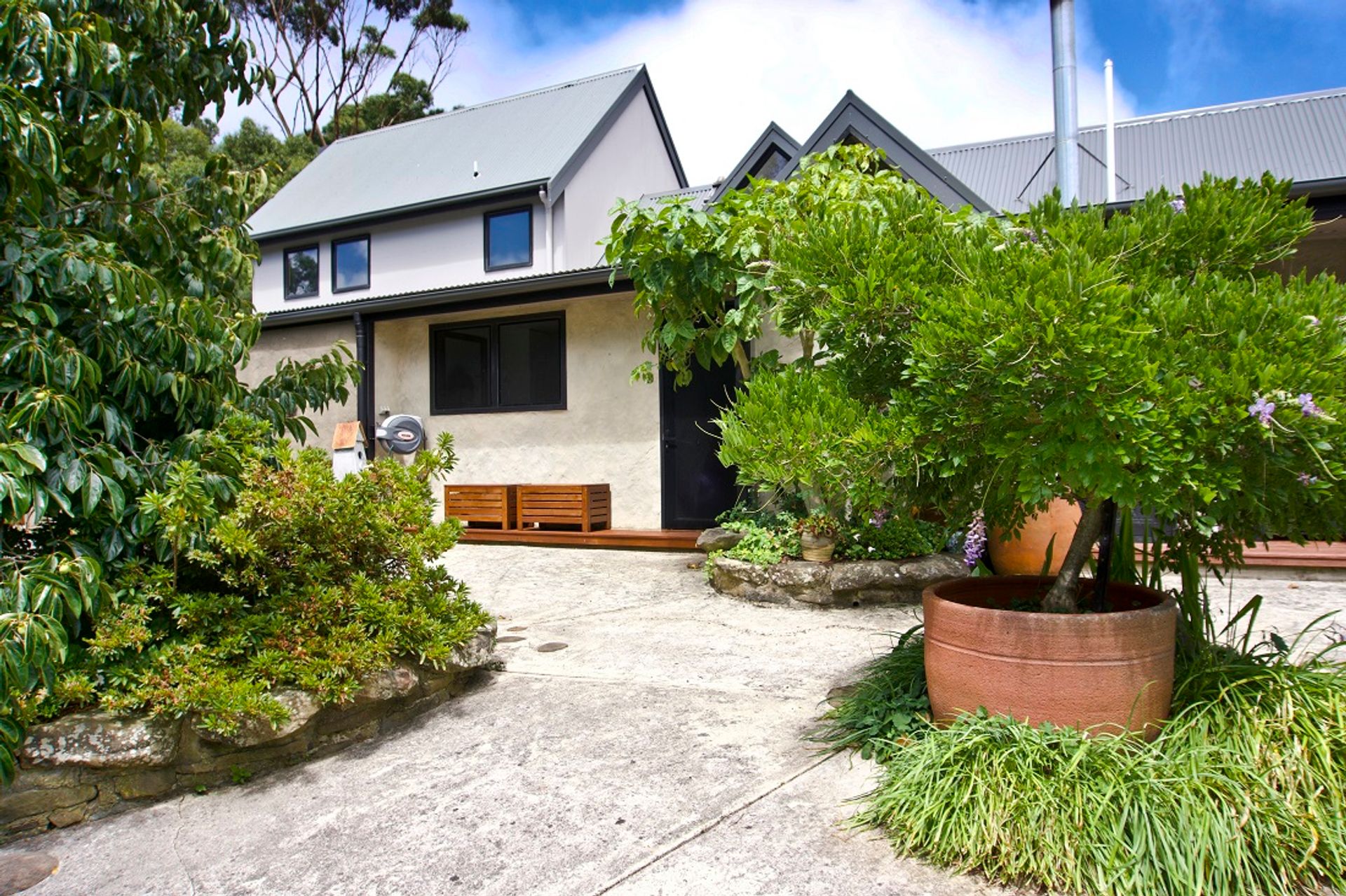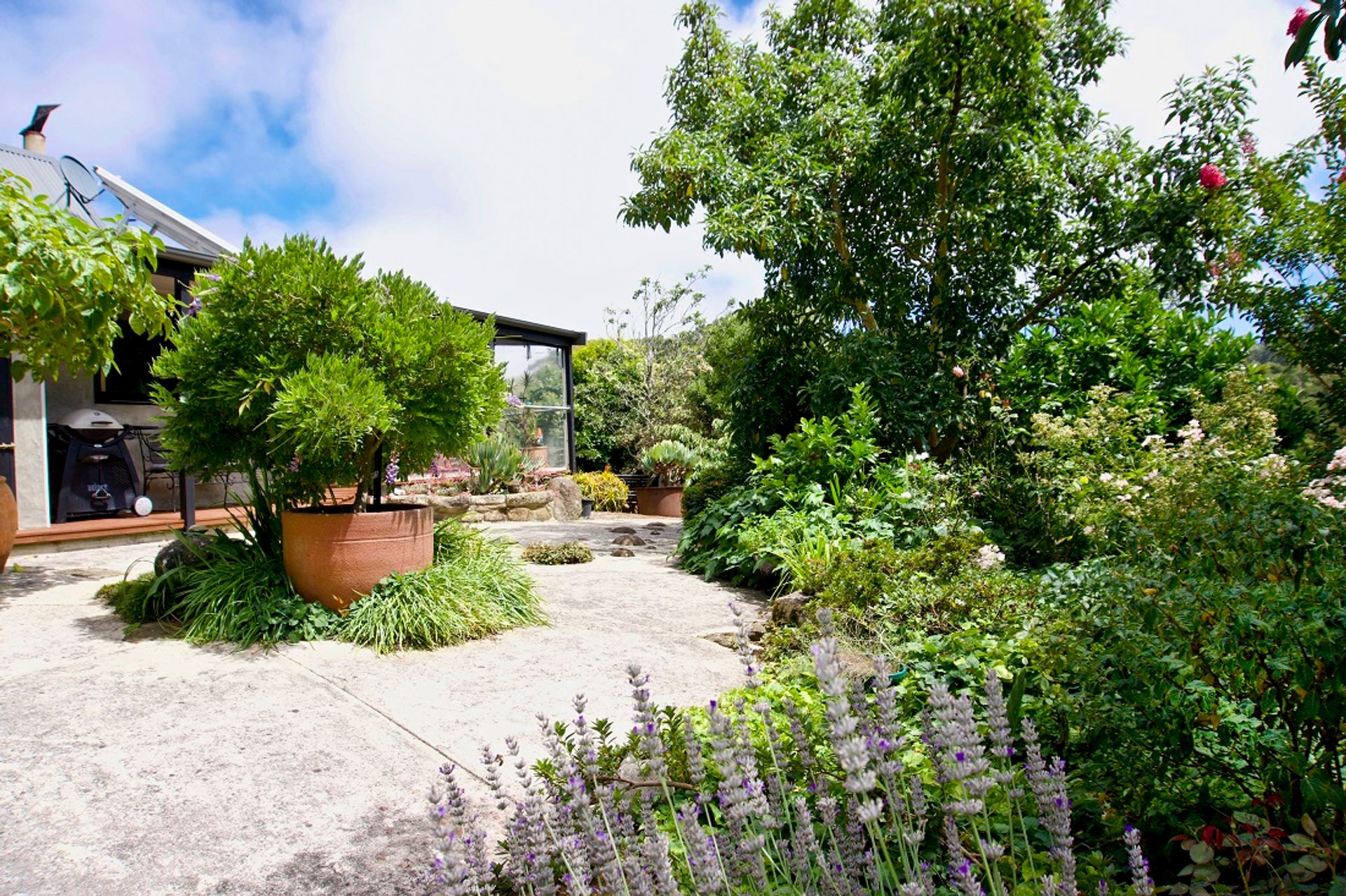 Built to be low maintenance and very comfortable, the garden is luscious with a veggie patch close to the kitchen, and abundantly fruiting avocadoes and lemons at the back door.