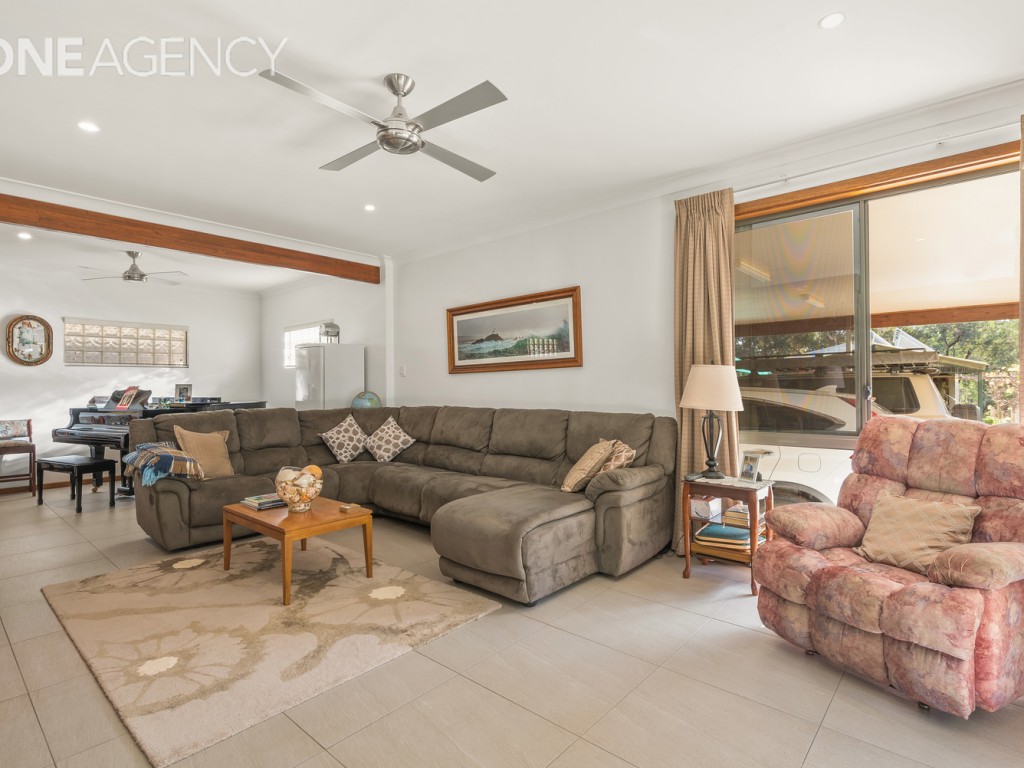 - 2 large indoor living areas separated by a stone feature wall & slow combustion heater