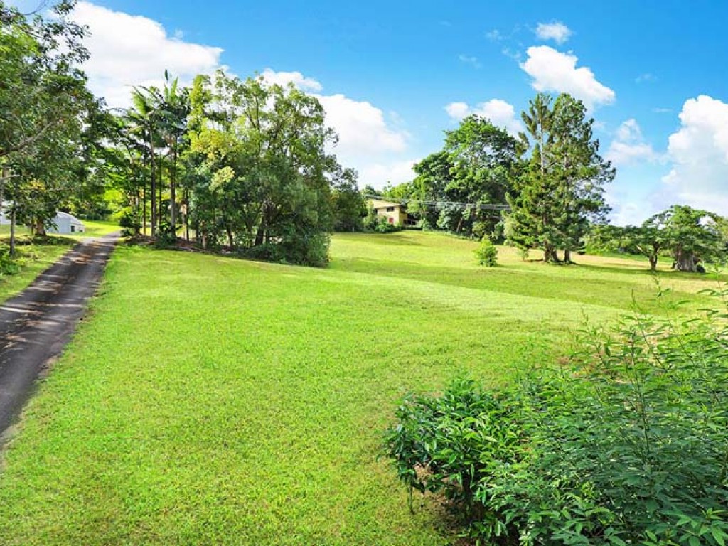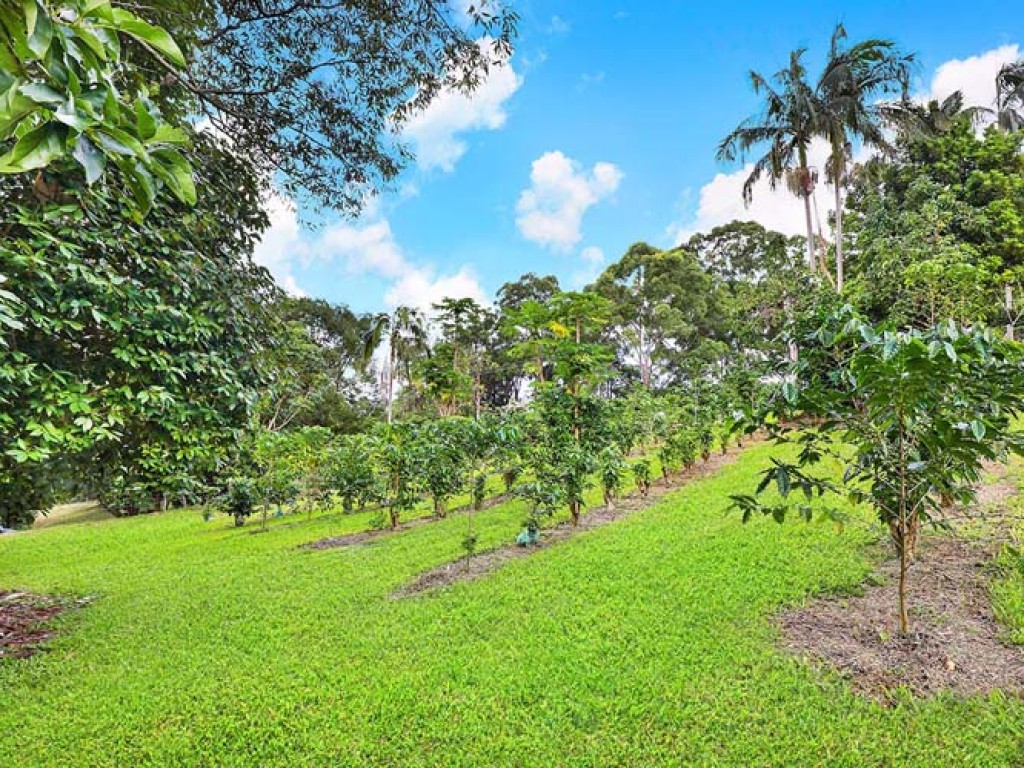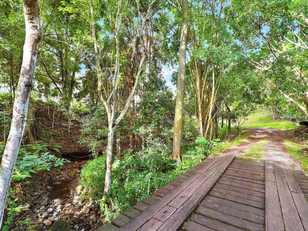 As soon as you drive through the gate you get a sense of what this property offers. The mainly bitumen driveway meanders through the property past the coffee and tea plantation, over the wooden bridge with its idyllic rainforest setting up to the home.