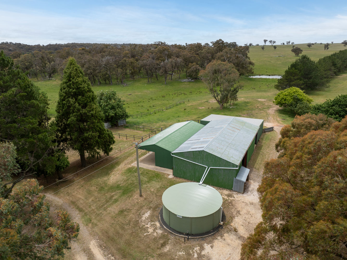 • Infrastructure: Three-bay garage near the homestead. Steel-frame machinery/hay shed, timber two-stand woolshed, two silos, timber sheep yards, steel cattle yards, and a steel-frame shed with six horse stables, tack room and wash bay.