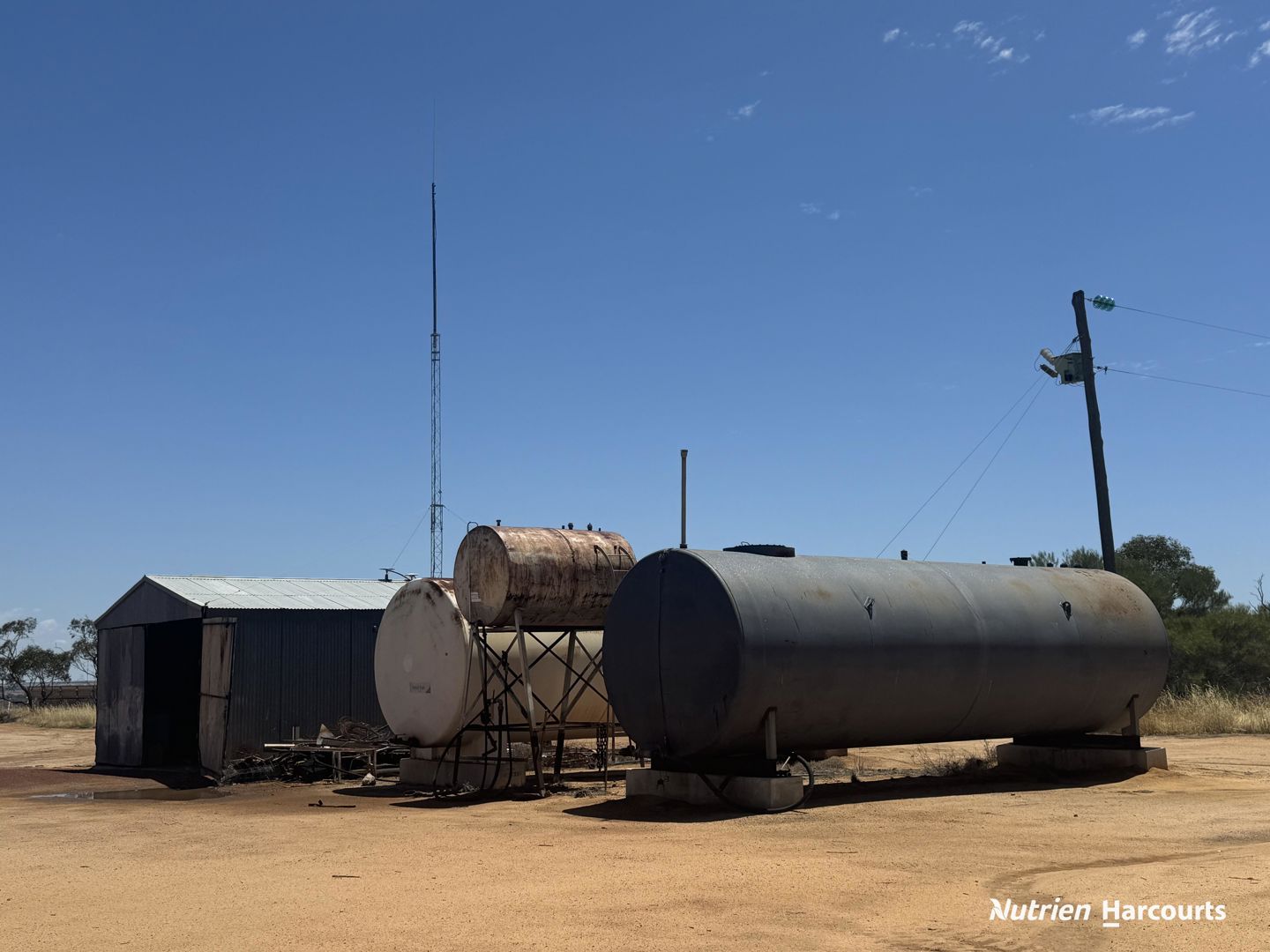 Working infrastructure includes workshop shed (backup generator), 2 Fertiliser Sheds - (1 small), 580t Elevated Grain Silos, 50t Urea Silo, 2 x 60t UAN Tanks, 50kl Diesel, 5kl Diesel and 3 Airwell water pumps supplying bore/dam water for household and spraying supplies.