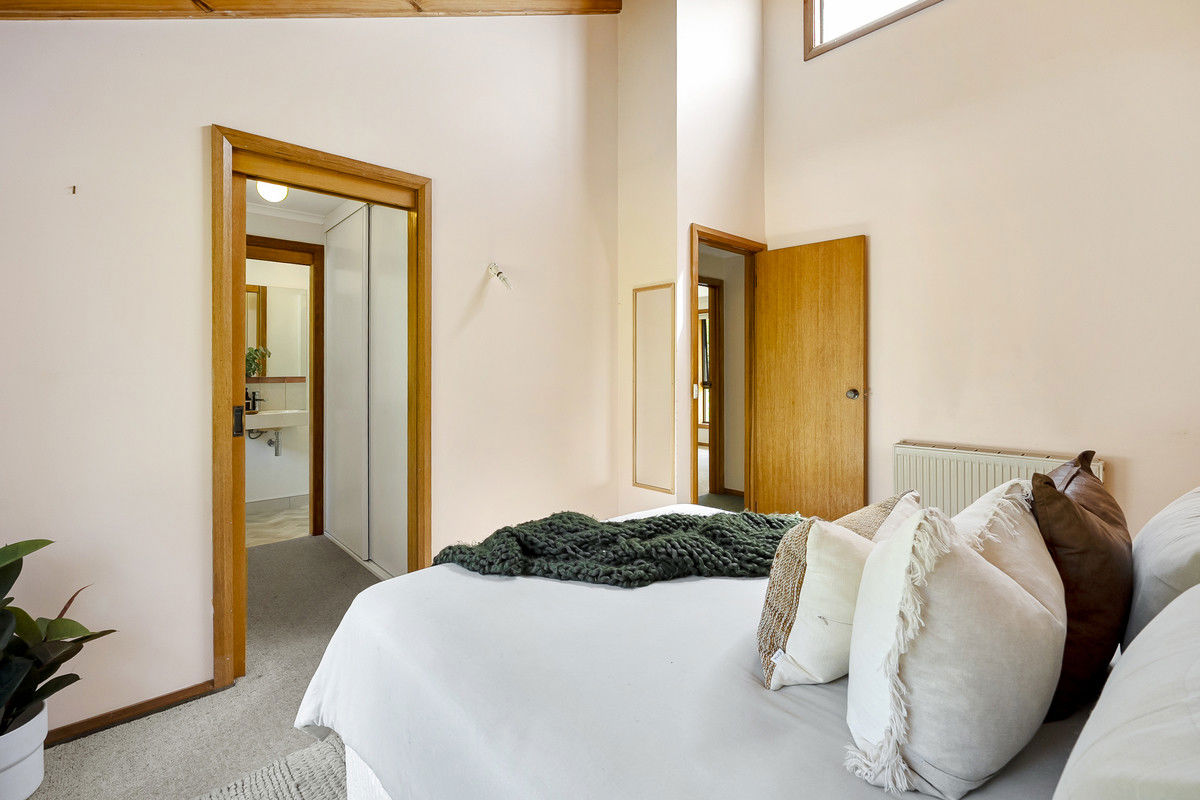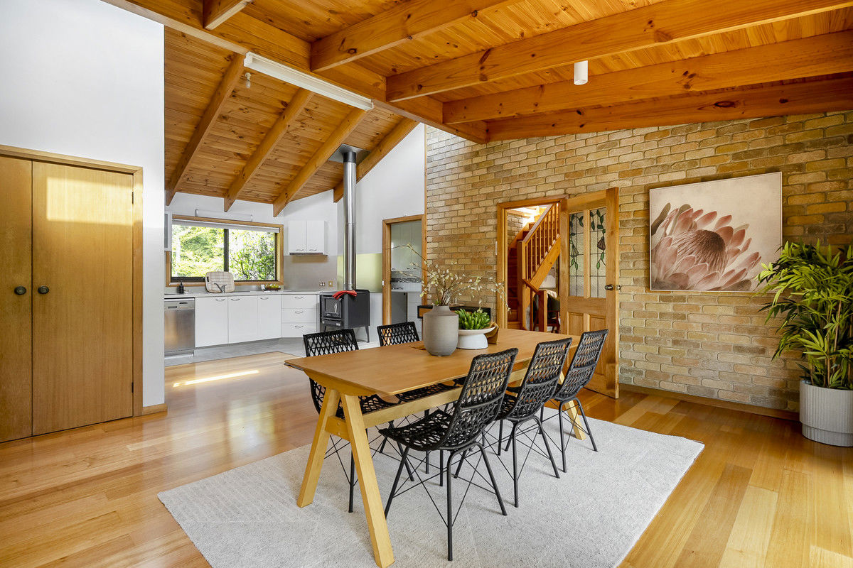 Designed and built over forty years ago yet feeling remarkably contemporary, the home showcases early solar-passive principles that remain highly sought after today. Soaring ceilings, northern highlight windows, double insulation, and an intelligent layout work together to capture light, warmth, and efficiency throughout the year. Comfort is further enhanced by hydronic heating via a Linéa woodfire with radiators, plus a second wood heater in the main living area — perfect for cosy winter evenings.