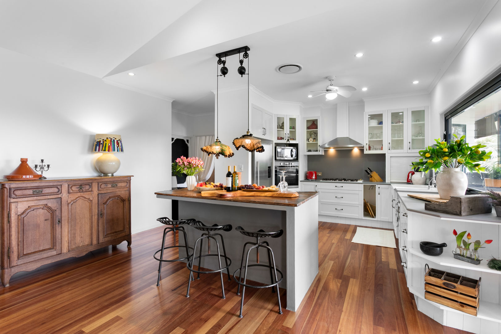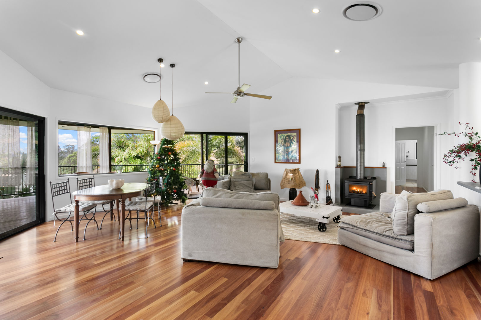 From the moment you enter, the home reveals its refined warmth and timeless appeal. High ceilings, rich timber floors, two beautifully appointed ensuites and a cosy fireplace combine classic country charm with modern luxury. Light-filled open-plan living spaces flow effortlessly, creating a welcoming environment for both everyday living and entertaining.