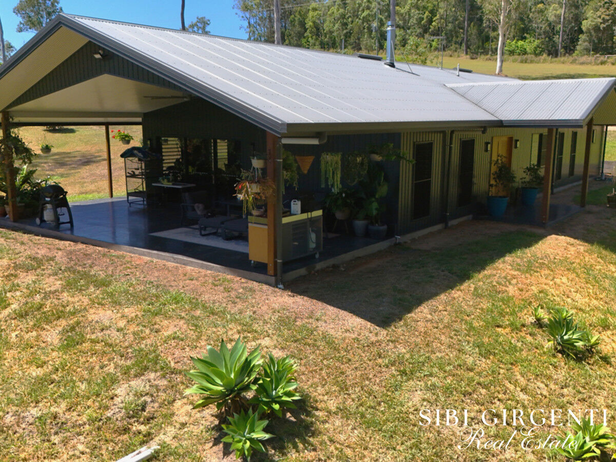 The property features a recently completed custom designed steel frame Colourbond home. A separate one bedroom colourbond dwelling shares the 13kW solar system and is supported by ample rainwater tanks, offering an Eco-conscious, low-cost lifestyle with reliable water access. Very private with no visible neighbors, the home is positioned to make the most of the river frontage, with the outdoor entertaining area that captures the peaceful outlook over the property.
