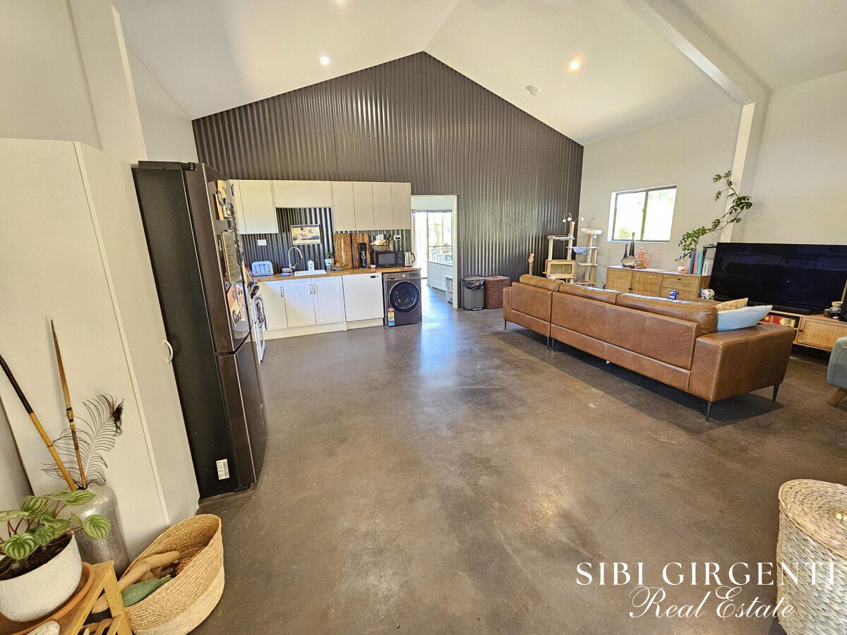 The approved one-bedroom dwelling is ideal for extended family, guests, or rental income. It offers one bedroom, one bathroom, and open plan living with polished concrete floors and a stylish feature wall in the living area. A back patio area provides a private outdoor space to enjoy the setting, and there is two-car accommodation for added convenience.