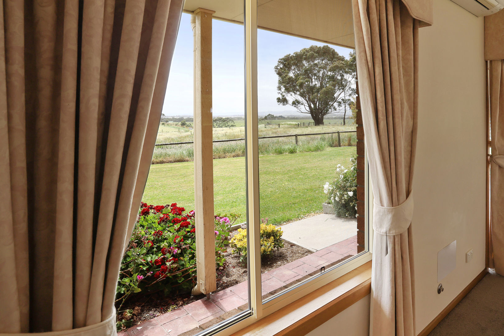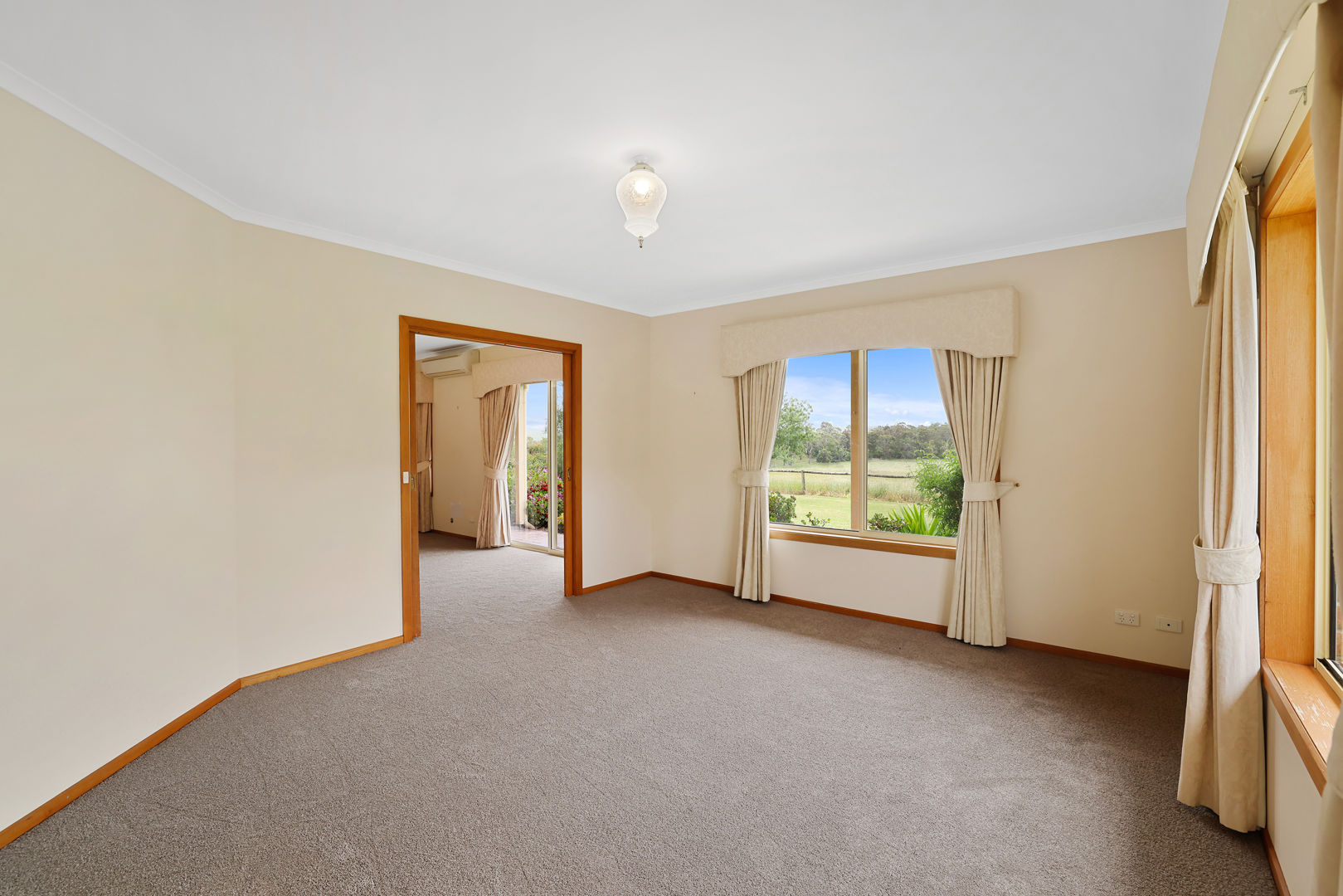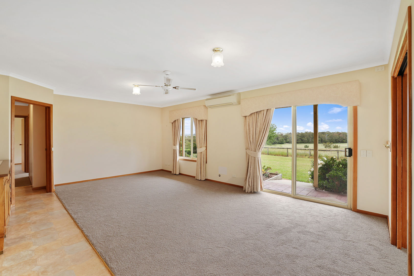 takes in the stunning rural outlook, while the well-appointed kitchen features electric cooking, a breakfast bar and a generous walk-in pantry. A formal dining or second living zone adds flexibility for entertaining or relaxing with family.