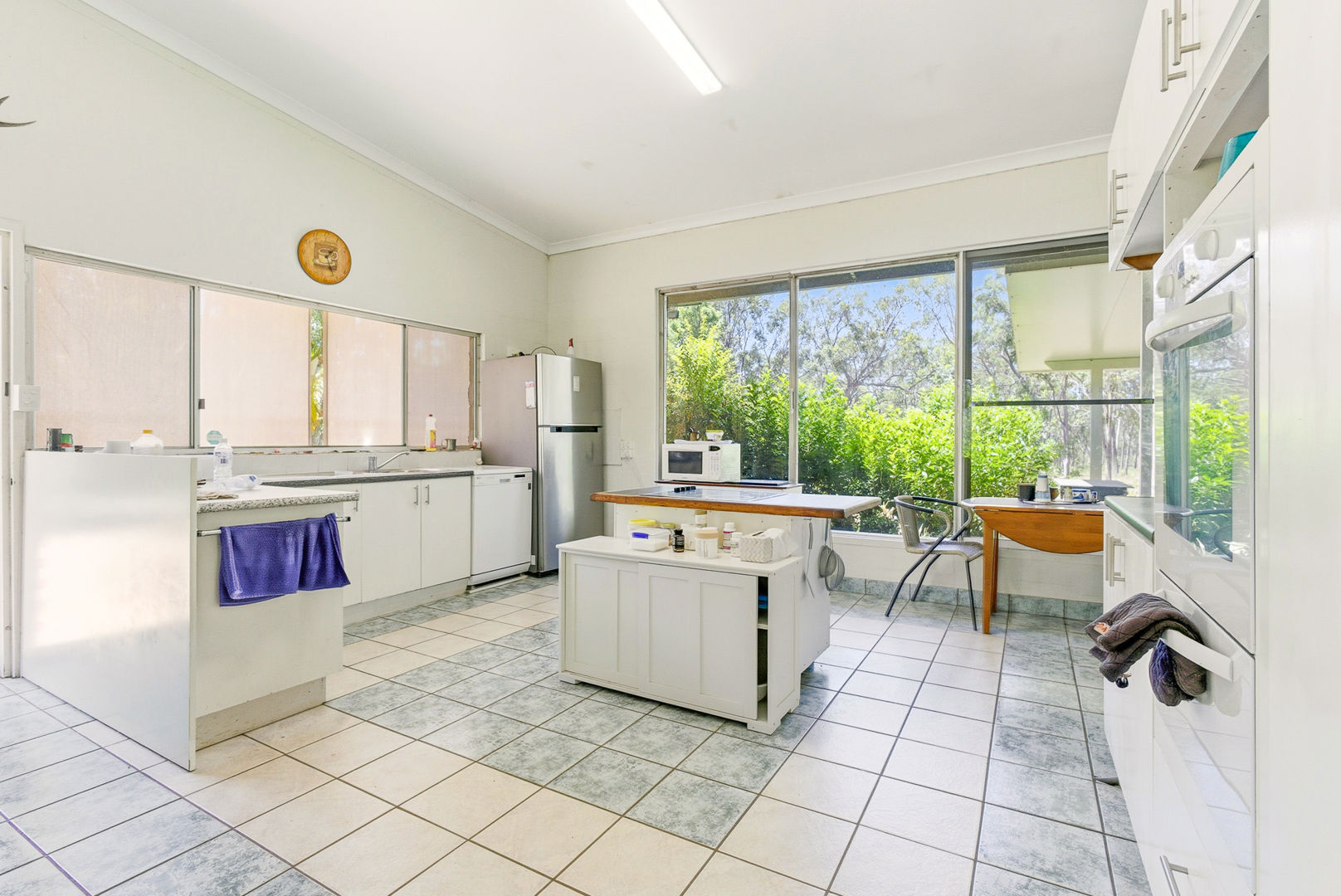 * Spacious kitchen,with dishwasher, Island bench, Electric stove & Oven, with great views out into the gardens