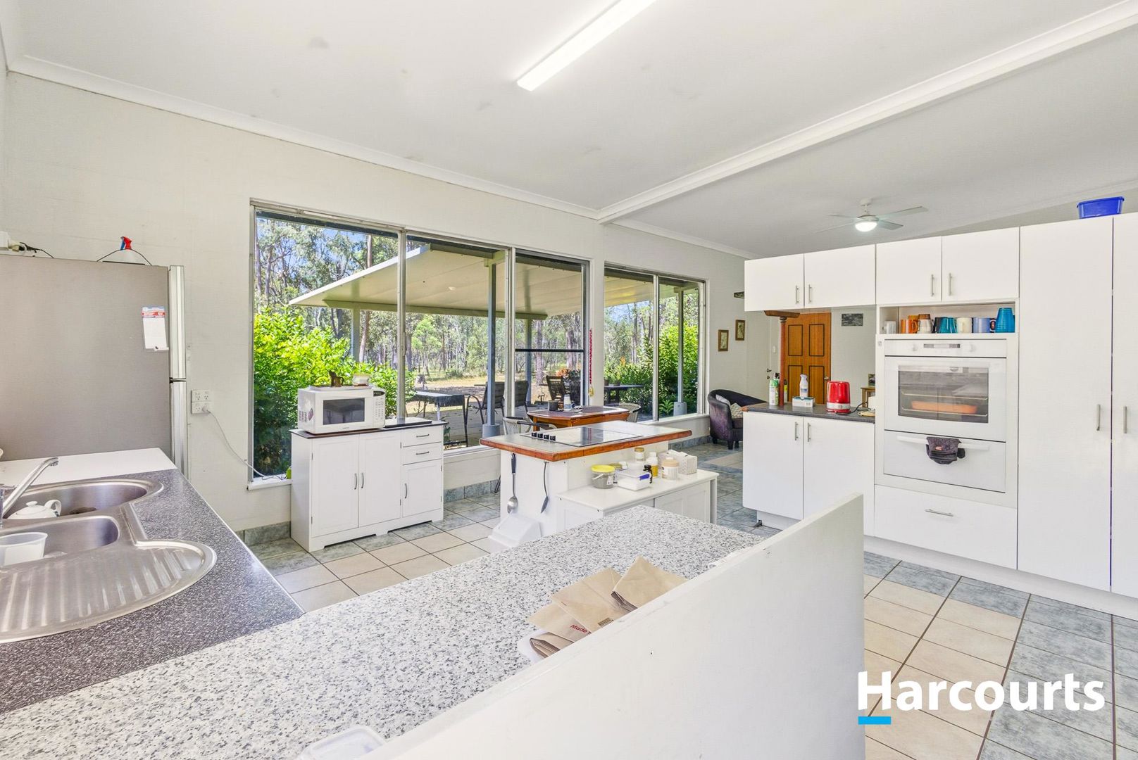* Spacious kitchen,with dishwasher, Island bench, Electric stove & Oven, with great views out into the gardens