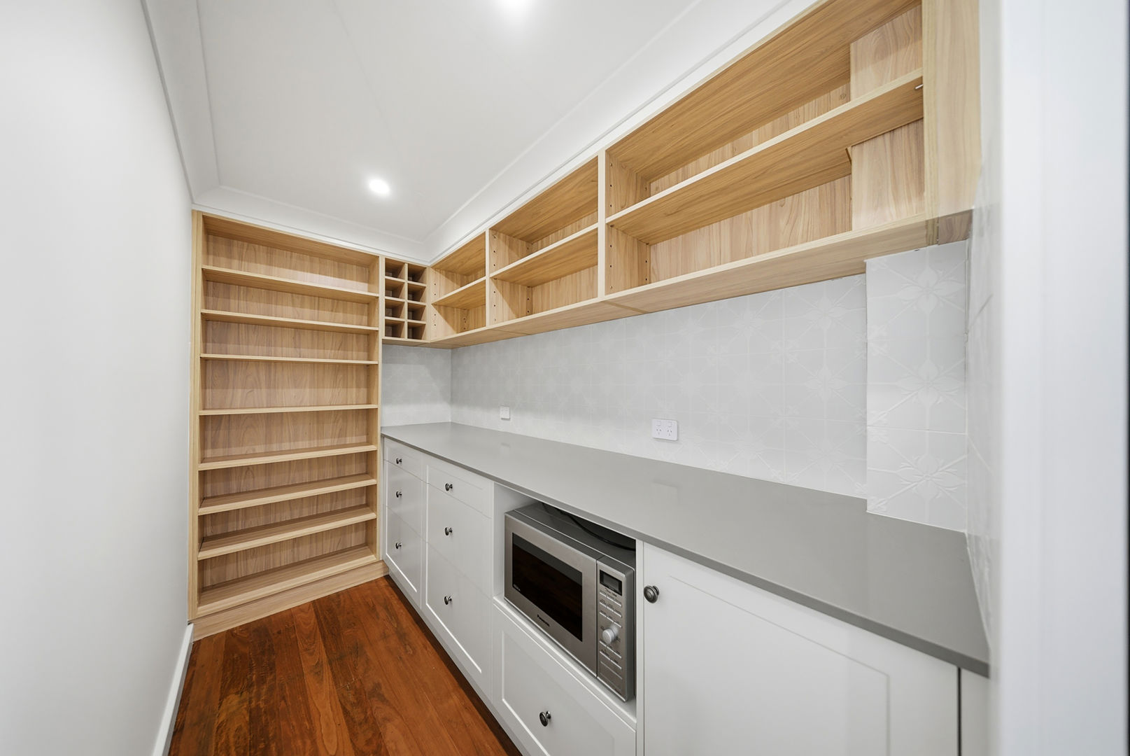• Butler's pantry with stone benchtops, extensive storage and microwave