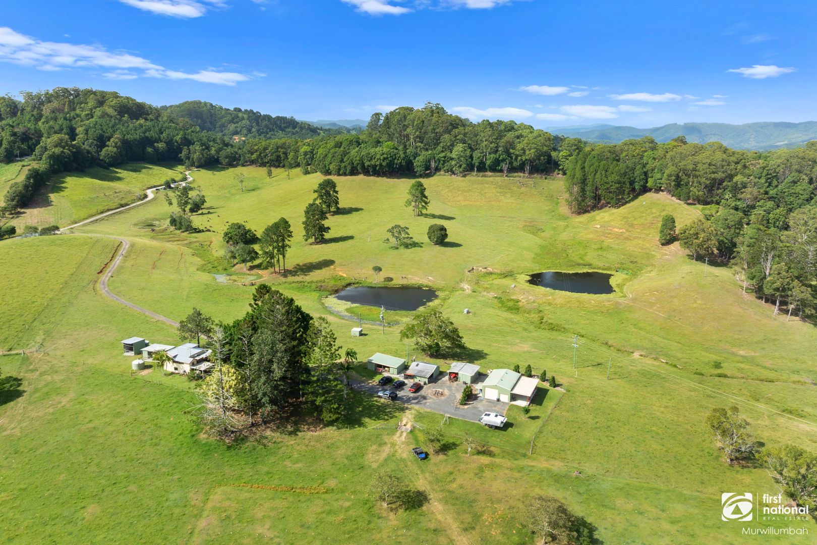 Water security is a standout, with a permanent creek winding through the property complemented by two sizeable dams, ensuring reliable stock water year-round across the holding. The terrain is a productive mix of gentle hills, elevated ridgelines, and fertile flats — all benefiting from the Tweed Valley's rich volcanic soils and high rainfall, which keeps pastures green and productive throughout the seasons.