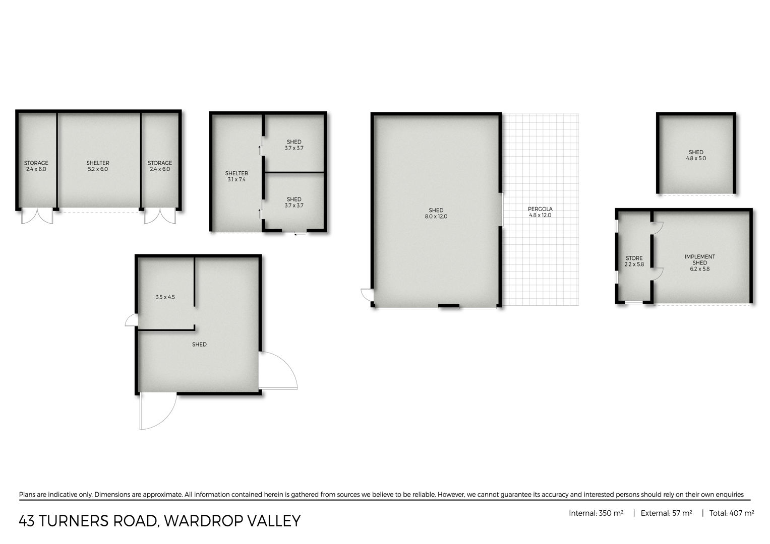 The property is well serviced by a substantial 8m x 12m shedshed with concrete floor, dual roller doors, and attached carport — providing serious storage and workspace for farm equipment and vehicles. An 8.4 x 5.8m machinery shed with 3 additional sheds offering further storage, workshop space, and shelter across the holding.