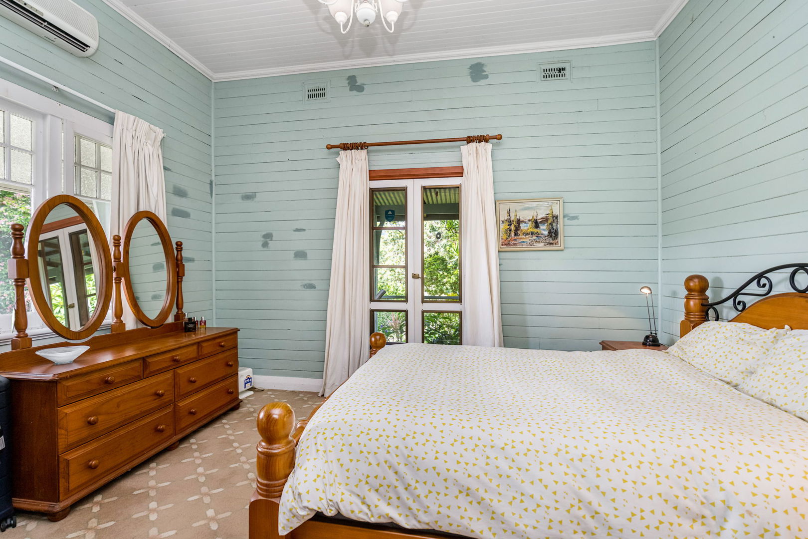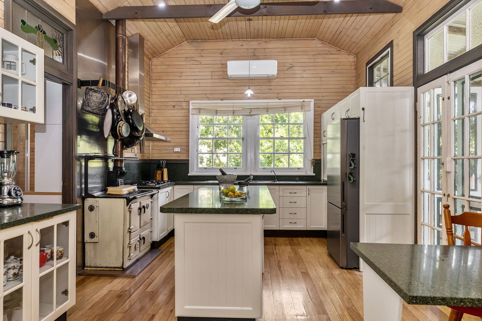 The main residence, a relocated 1913 Queenslander (originally an antique shop in Lismore), provides functional living with 4 Bedrooms (3 double), 2 bathrooms, office space, separate lounge and dining, and a real country kitchen featuring stone tops, a 6-burner commercial gas cooktop, wall oven, dishwasher, large island bench, pantry, Rayburn wood heater, and gas heaters. High ceilings, original timber fret work, open verandahs, established gardens, and an inground pool add style and comfort. Hot water is solar-powered, and 10kw brand new solar system on the main house.