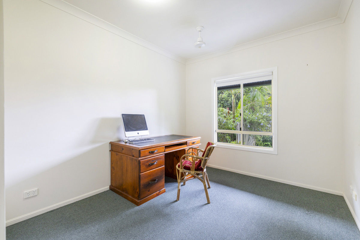 The grounds are truly enchanting. Established gardens and hedges embrace the property, while winding pathways lead beneath flowering trees to hidden seating areas and a raised entertaining deck nestled among whispering sheoaks. It's the perfect setting for quiet reflection, entertaining, or simply enjoying the abundant wildlife, including koalas, wallabies, rosellas, bowerbirds, and banded rails.